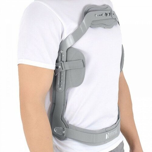 Можно легко регулировать ширину и высоту корсета. Нижняя часть рамы имеет систему фиксирования угла ее положения, а также может свободно двигаться вокруг оси креплений чтобы пациент мог сидеть.