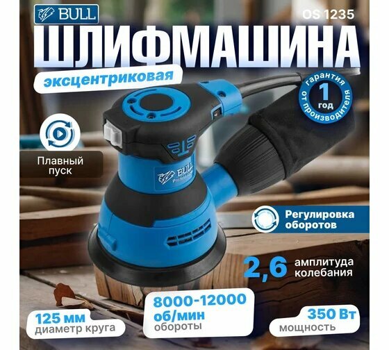 Эксцентриковая орбитальная шлифмашина BULL OS 1235 0327338: сравнение цен, характеристики, фото, актуальное наличие и цены.