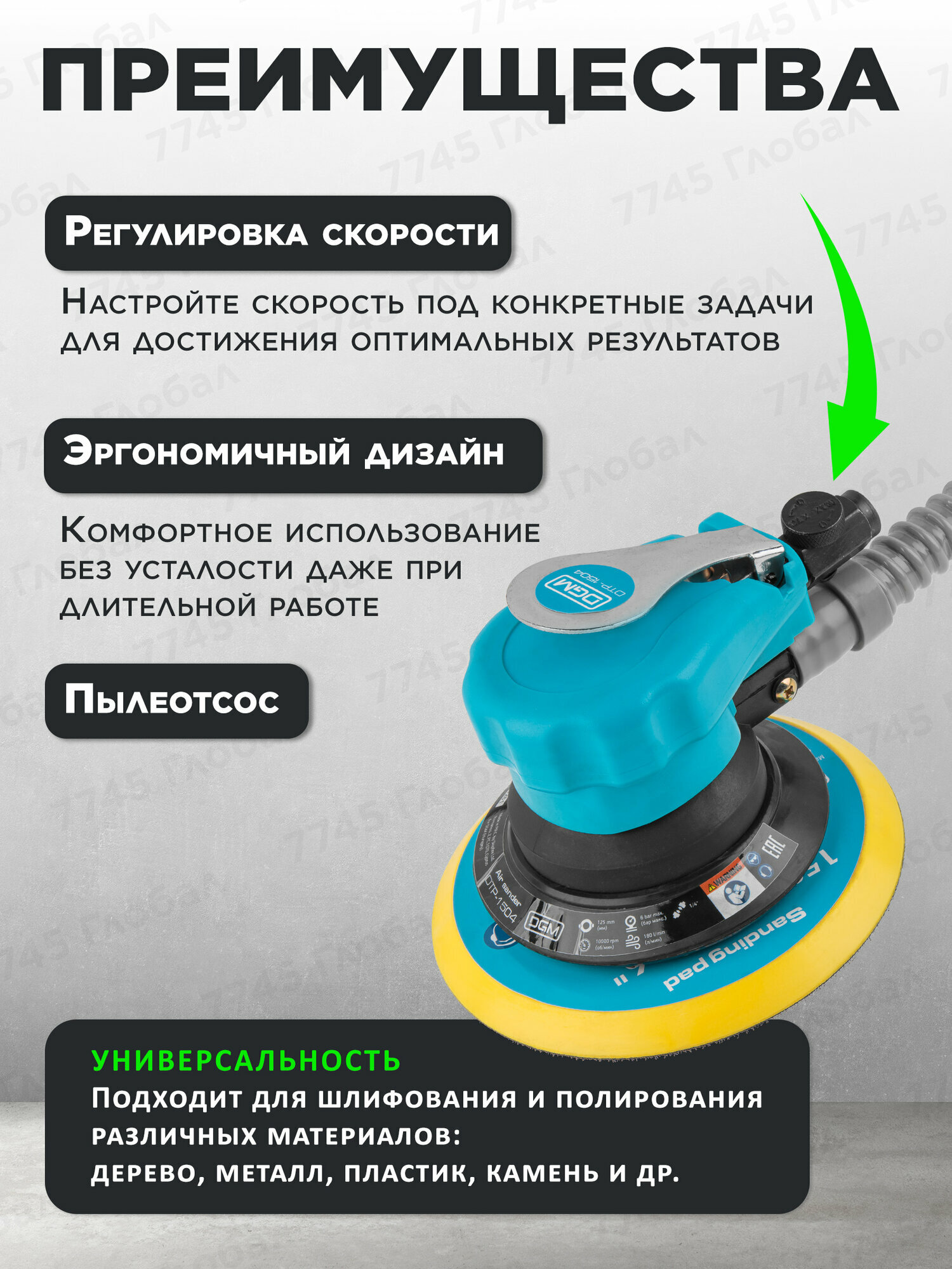 Купить Пневмошлифмашина эксцентриковая с пылеотсосом DGM (DTP-1504) с доставкой по всей России. Пневмошлифмашина эксцентриковая с пылеотсосом DGM (DTP-1504): сравнение цен, характеристики, фото, актуальное наличие и цены.