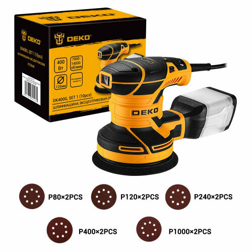 Купить Эксцентриковая шлифмашина Deko DK400G, с набором оснастки 10шт, 400Вт (085-1056) с доставкой по всей России. Эксцентриковая шлифмашина Deko DK400G, с набором оснастки 10шт, 400Вт (085-1056): сравнение цен, характеристики, фото, актуальное наличие и цены.