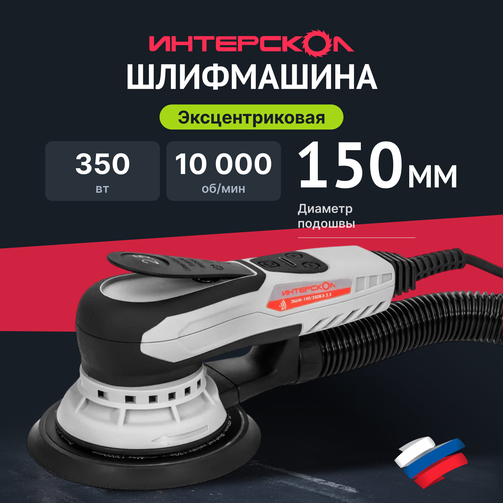 Эксцентриковая шлифмашина ИНТЕРСКОЛ ЭШМ-150/350ВЭ 2,5, 350 Вт, 150 мм, 20000 кол/мин (799.1.1.70): сравнение цен, характеристики, фото, актуальное наличие и цены.