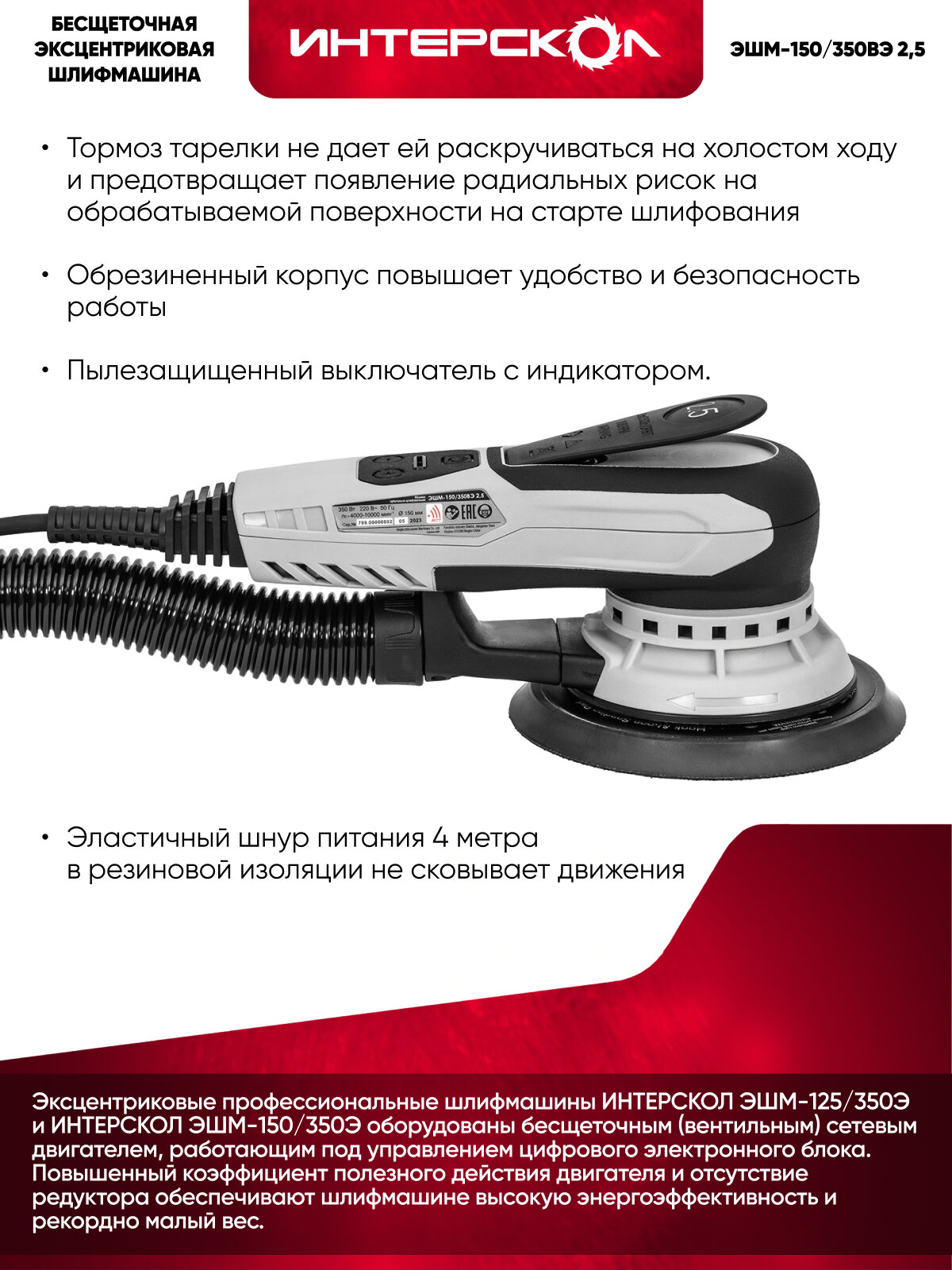 Эксцентриковая шлифмашина ИНТЕРСКОЛ ЭШМ-150/350ВЭ 2,5, 350 Вт, 150 мм, 20000 кол/мин 799.1.1.70: сравнение цен, характеристики, фото, актуальное наличие и цены.