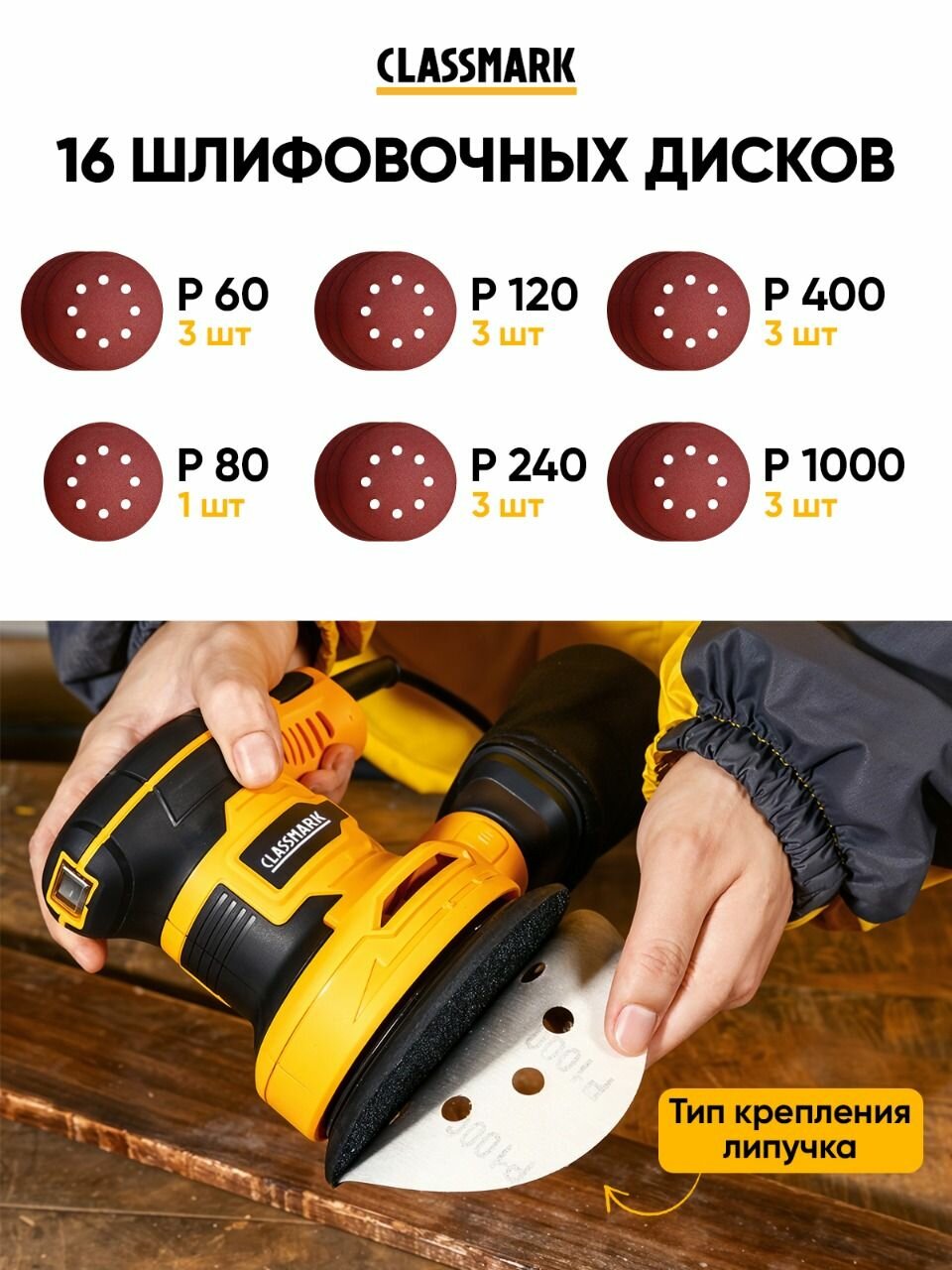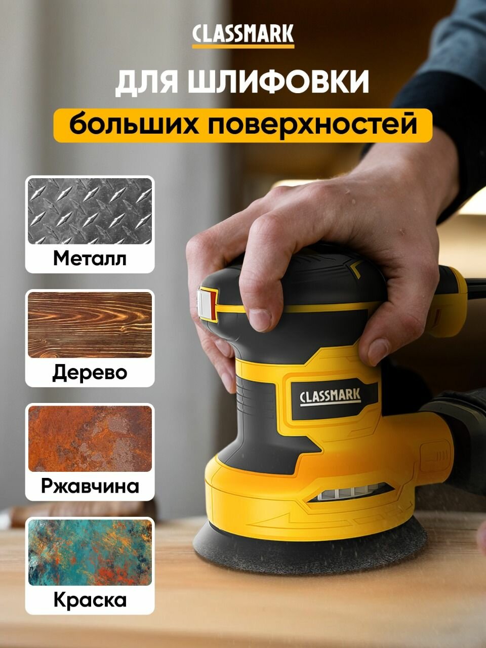 Купить Эксцентриковая шлифовальная машина Classmark HD3298, 400Вт, пылесборник, жёлтый с доставкой по всей России.