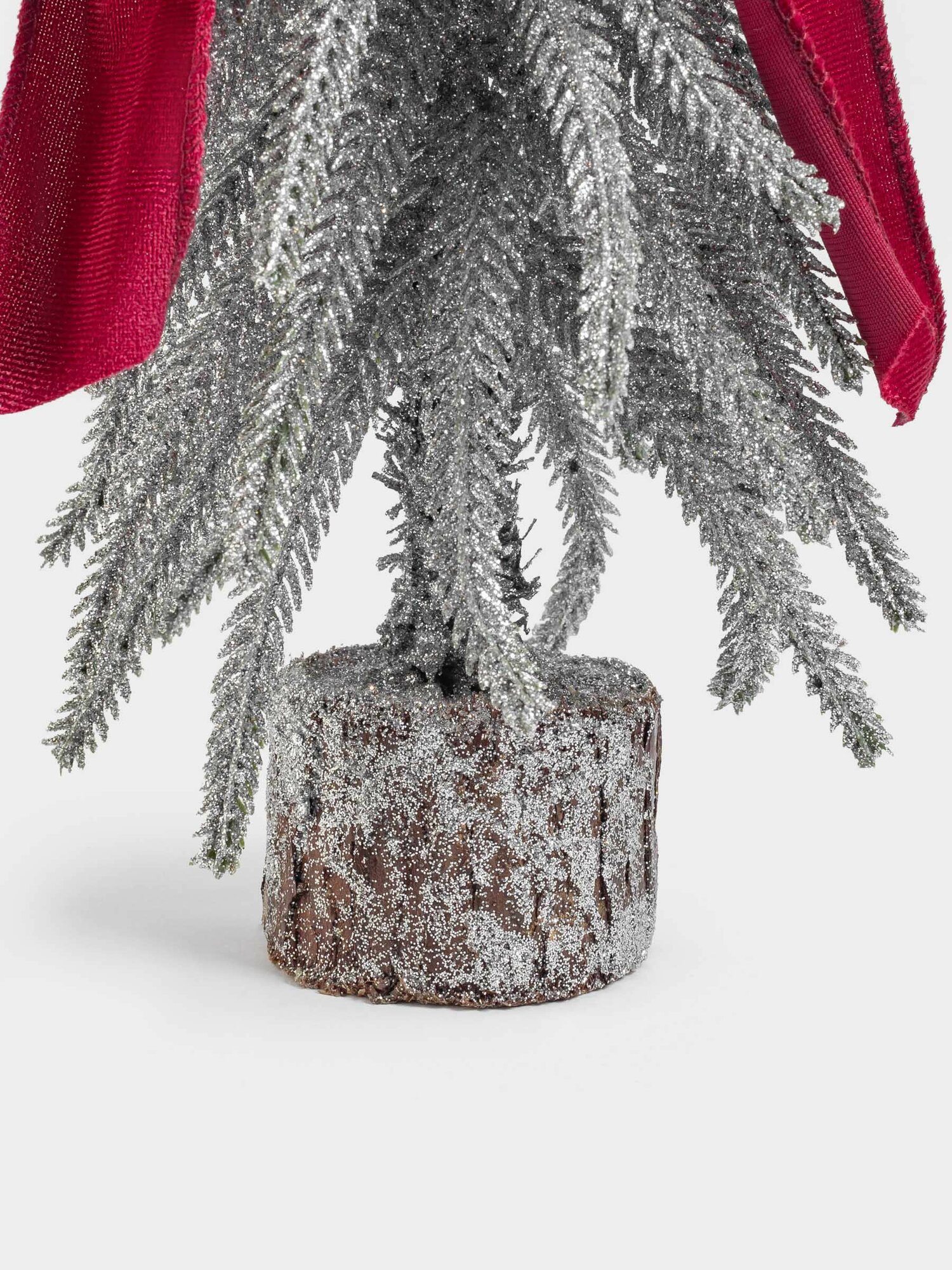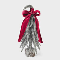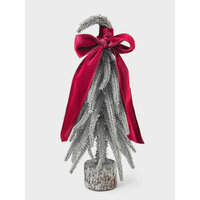 Купить Ель искусственная, 30 см, полиэтилен/дерево, серебристая, Ель с бордовым бантом, Conifer curved с доставкой по всей России.