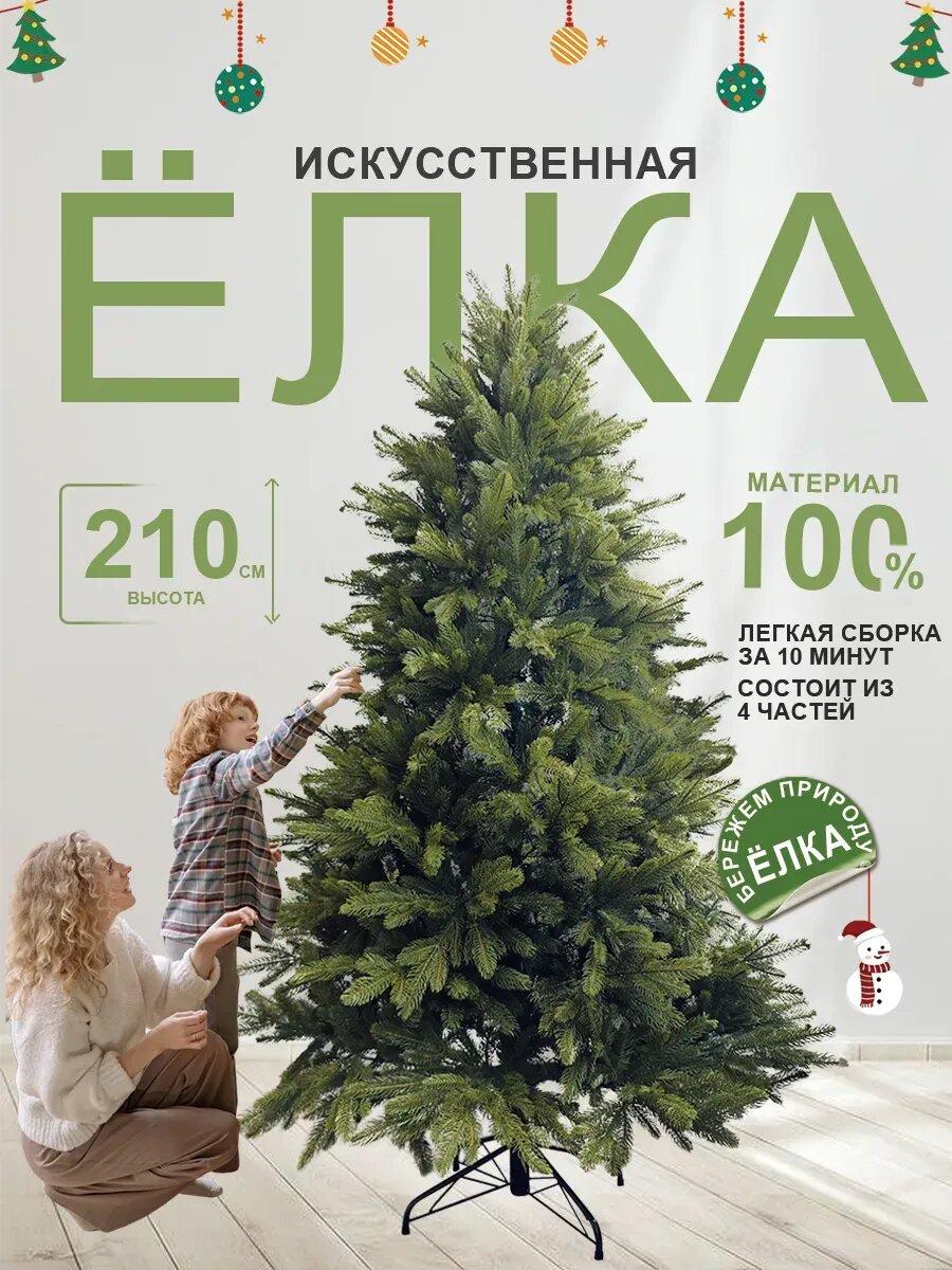 Купить Ель искусственная Елка Раскидистая премиум 210 см, литая, премиум, зеленая. с доставкой по всей России.