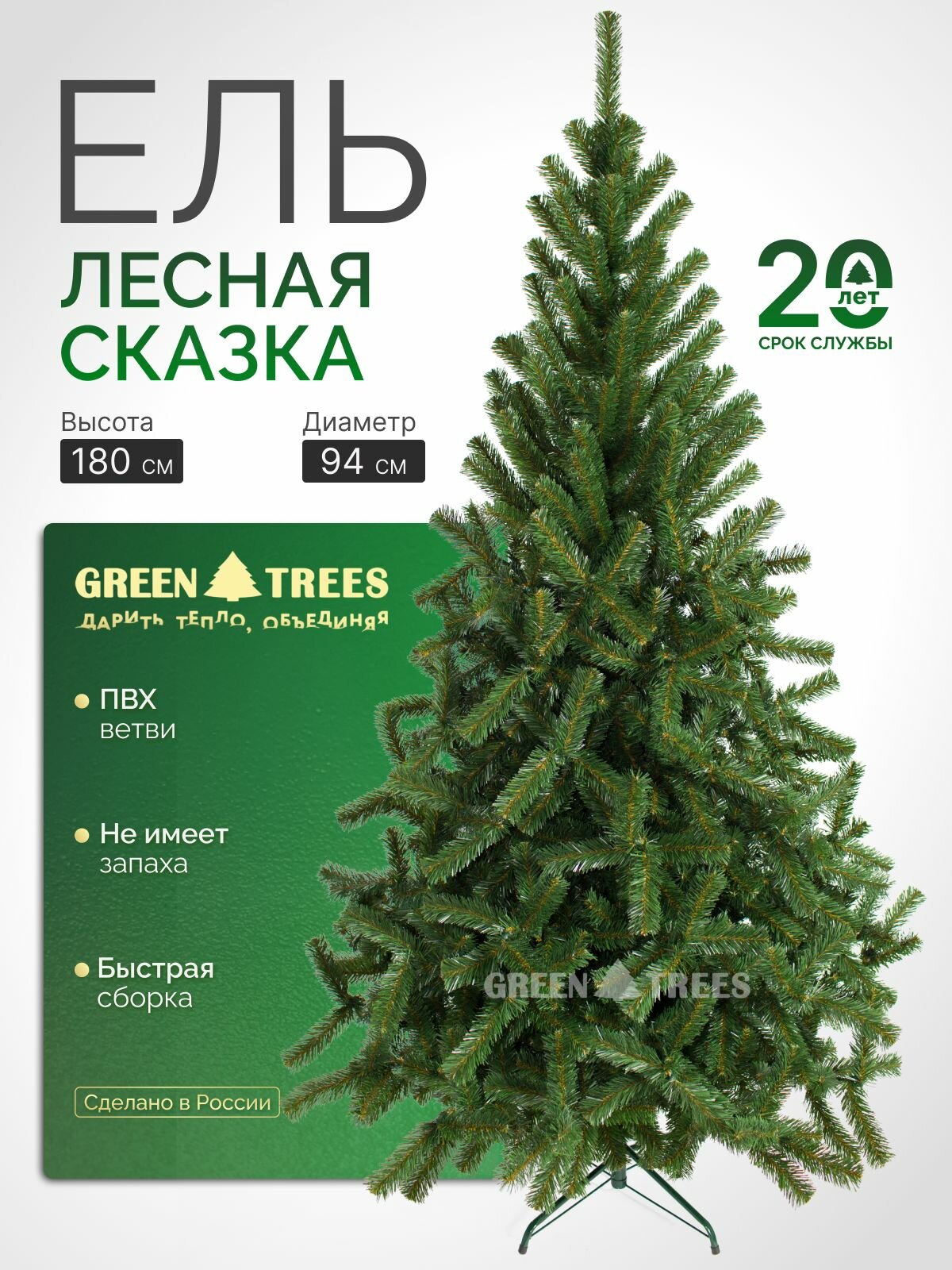 Купить Елка искусственная новогодняя Лесная сказка GREENTREES 180 см, хвоя из ПВХ с доставкой по всей России.
