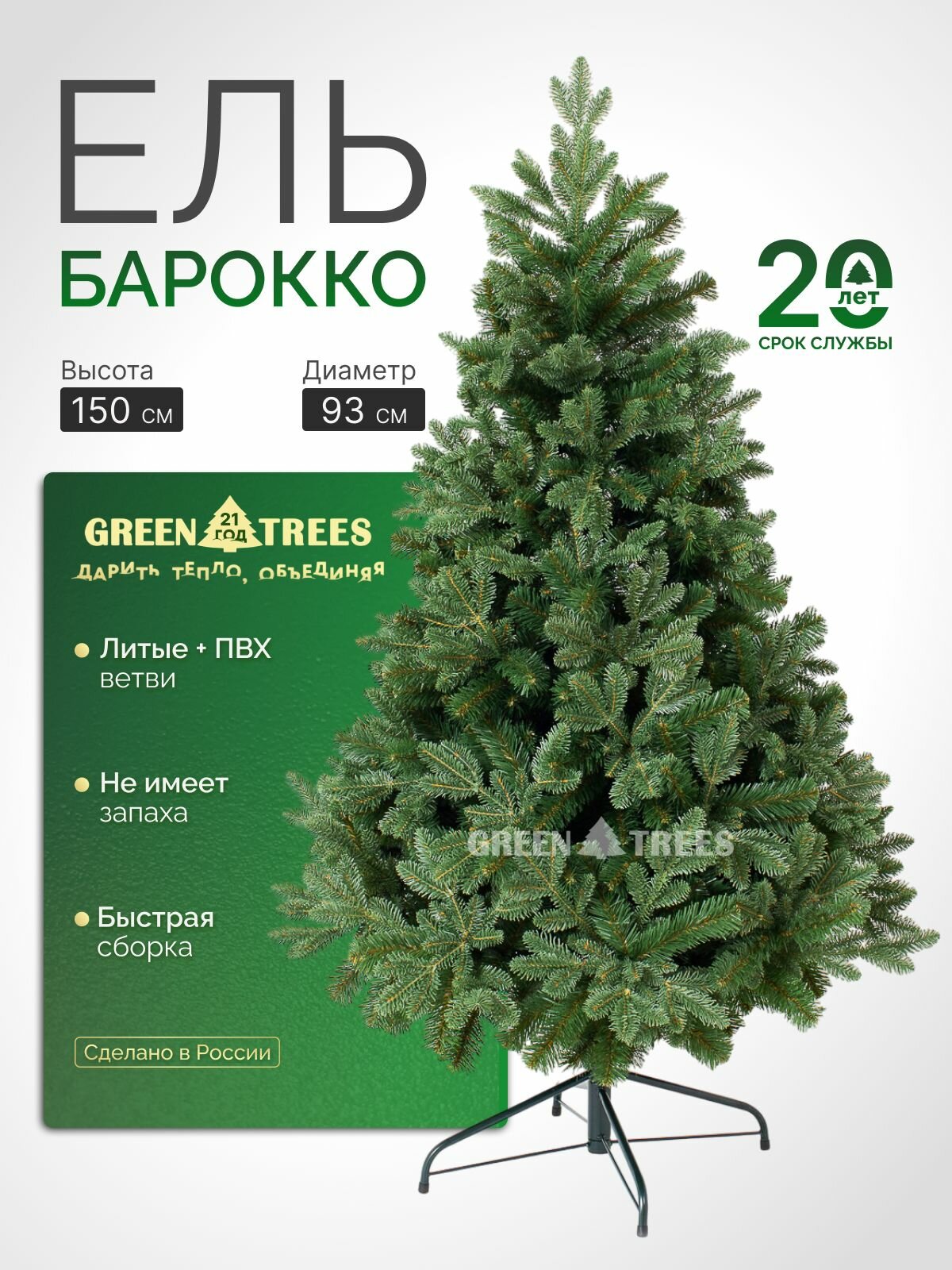 Елка искусственная новогодняя Барокко GREENTREES 150 см, хвоя литая + ПВХ: сравнение цен, характеристики, фото, актуальное наличие и цены.
