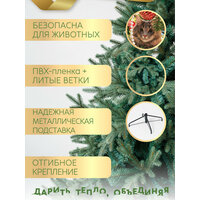 Искусственная новогодняя ель "Россо" 150 см (1,5 м) - ель премиум класса. Елка выполнена из высококачественной комбинированной хвои изумрудного цвета. Уникальную привлекательность этой модели придают мягкие пушистые ветки очень красивого нежно-голубого цвета. Благодаря такому оттенку хвои голубая ель смотрится очень изысканно и утонченно. Эта новогодняя красавица станет стильным украшением вашего дома или дачи, удивляя своей необычайной красотой. Игрушки и украшения на елку помогут создать сказочную атмосферу Нового года и Рождества. Ветки "Россо" премиум не осыпаются. Материал, из которого изготовлена хвоя, не имеют запаха, безопасны для детей и животных, гипоаллергенны, обладают огнеупорными свойствами: не поддерживают горение и не выделяют дым. Каркас и подставка под ель выполнены из металла. Искусственные елки российского производства GREENTREES / ГРИНТРИЗ легко собирать и легко разбирать, с этим справится даже ребенок! Конструкция искусственной новогодней ели Россо 150 см разборная, состоит из двух частей. Данная модель доступна в высотах 120 / 150 / 180 / 210 / 240 см.