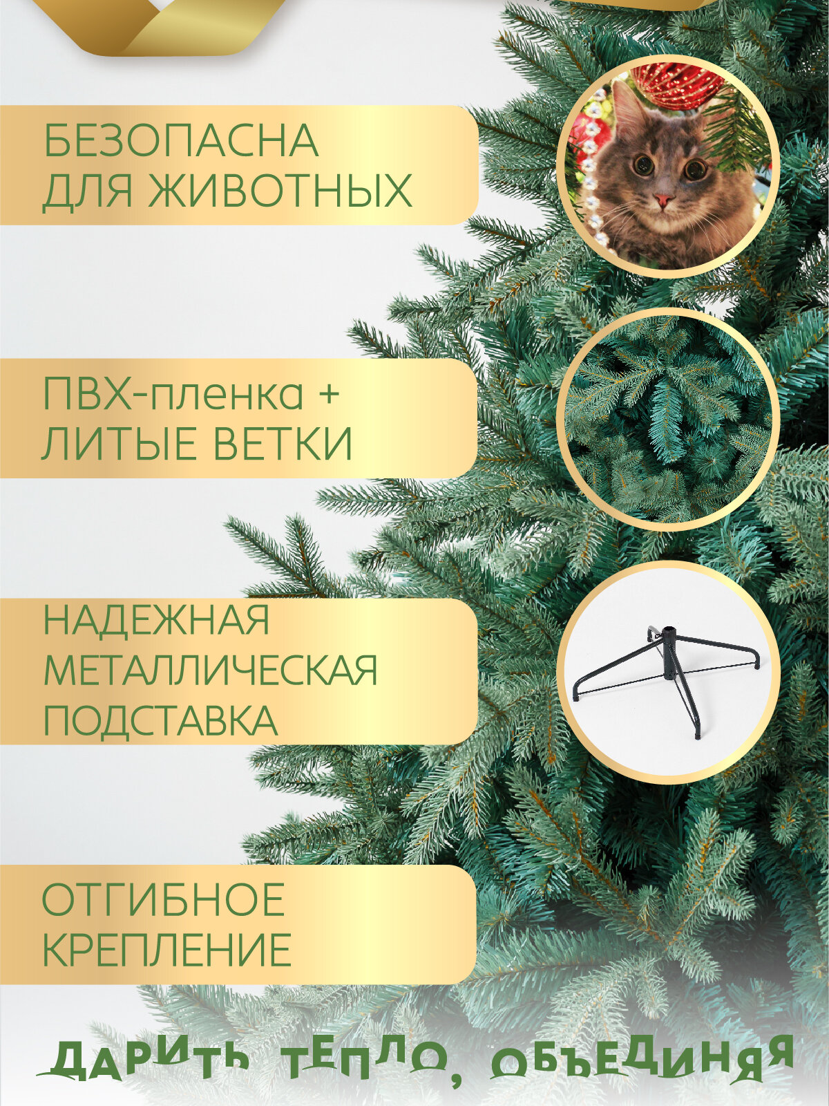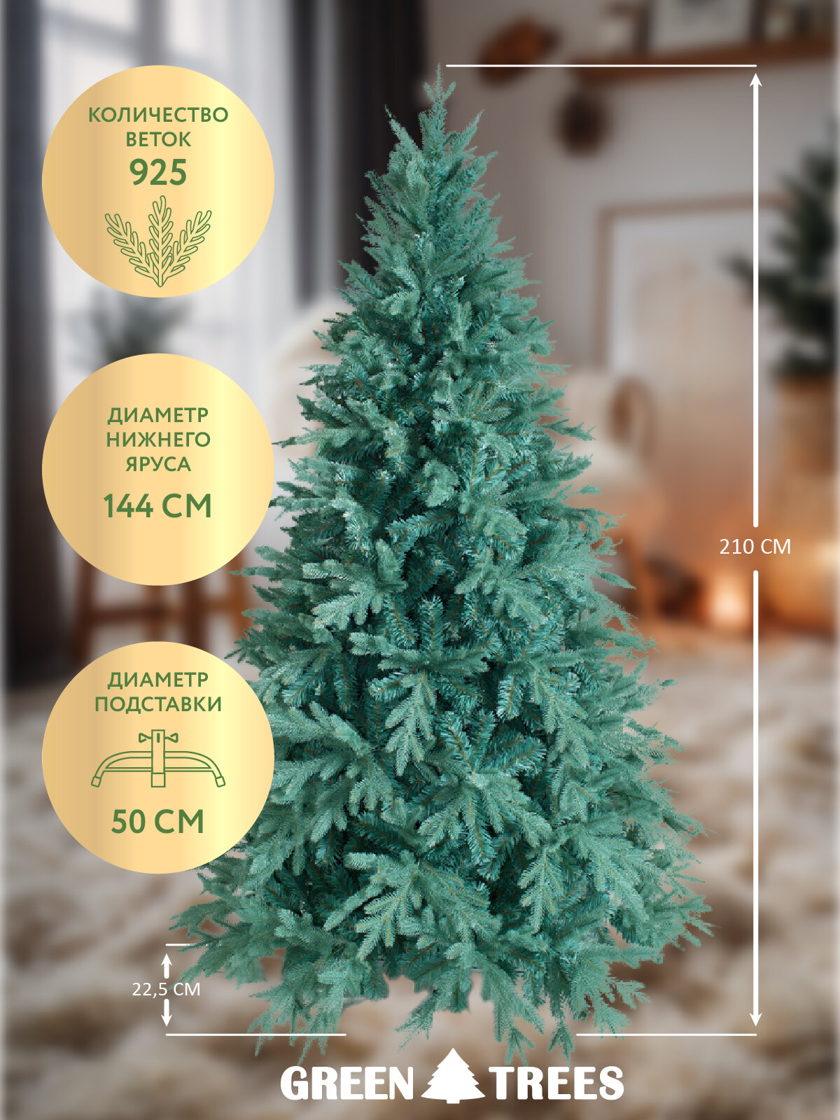 Искусственная новогодняя ель "Россо" 210 см (2,1 м) - ель премиум класса. Елка выполнена из высококачественной комбинированной хвои изумрудного цвета. Уникальную привлекательность этой модели придают мягкие пушистые ветки очень красивого нежно-голубого цвета. Благодаря такому оттенку хвои голубая ель смотрится очень изысканно и утонченно. Эта новогодняя красавица станет стильным украшением вашего дома или дачи, удивляя своей необычайной красотой. Игрушки и украшения на елку помогут создать сказочную атмосферу Нового года и Рождества. Ветки "Россо" премиум не осыпаются. Материал, из которого изготовлена хвоя, не имеют запаха, безопасны для детей и животных, гипоаллергенны, обладают огнеупорными свойствами: не поддерживают горение и не выделяют дым. Каркас и подставка под ель выполнены из металла. Искусственные елки российского производства GREENTREES / ГРИНТРИЗ легко собирать и легко разбирать, с этим справится даже ребенок! Конструкция искусственной новогодней ели Россо 210 см разборная, состоит из трех частей. Данная модель доступна в высотах 120 / 150 / 180 / 210 / 240 см.