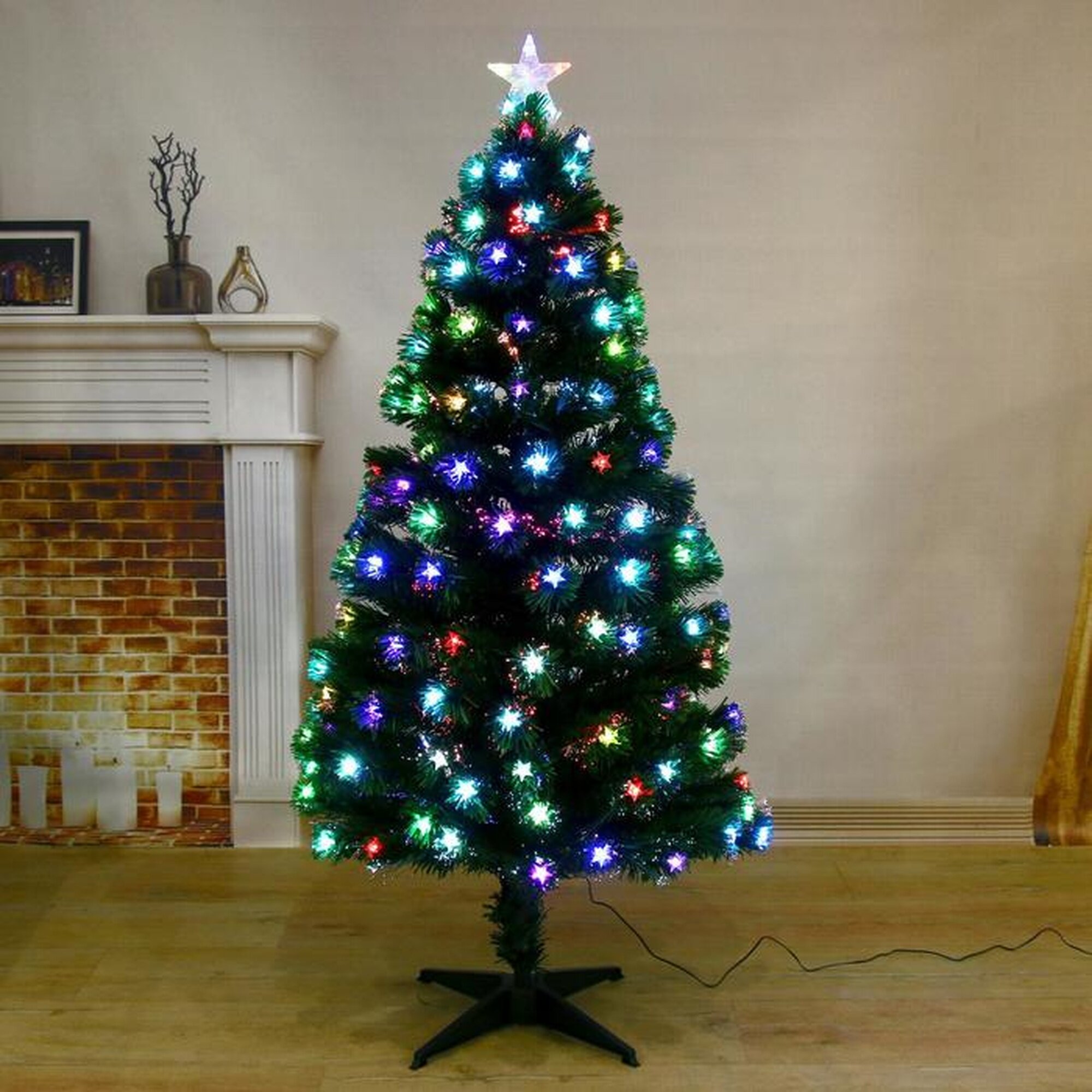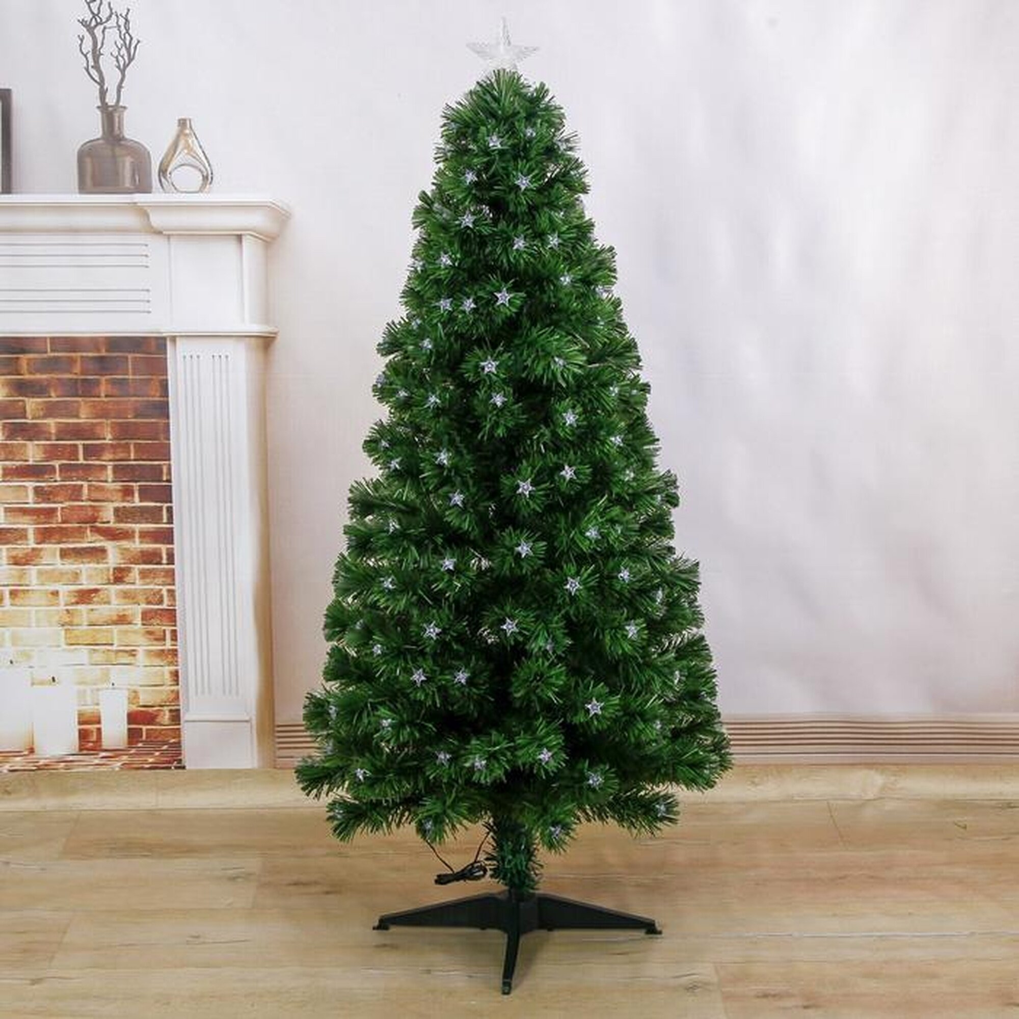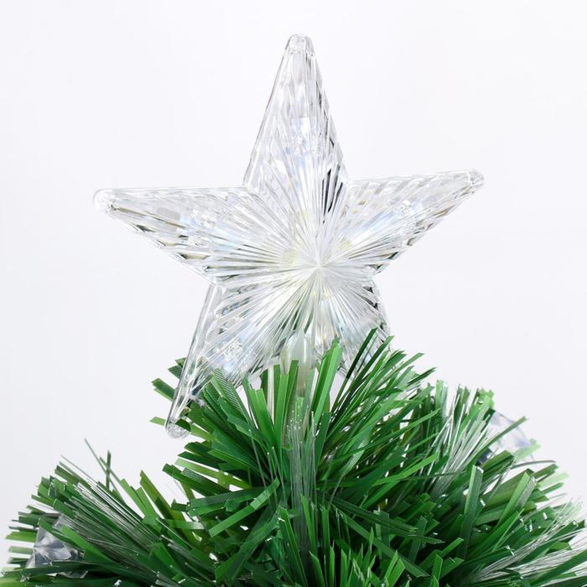 Артикул: 1067-777. Размеры: 150 см, Материал: Металл, Пластик, Вес: 4600 гр, Размер упаковки: 19 x 20 x 91 см, Свет: Да, Цвет: Зелёный, Работает от сети: Да, Тип ёлки: Напольная, Символ года: Нет, Диаметр нижнего яруса, см: 76, Высота, см: 150, Тип веток: ПВХ, Крепление веток: Отгибающиеся, Тематика праздника: Новый год, Набор: Нет, Температурное ограничение: Нет, Особенности декора: Подсветка. Невозможно представить нашу жизнь без праздников! Мы всегда ждём их и предвкушаем, обдумываем, как проведём памятный день, тщательно выбираем подарки и аксессуары, ведь именно они создают и поддерживают торжественный настрой. Ёлка фиброоптическая звезда 150 см, d нижнего яруса 76 см, 170 веток это отличный выбор, который привнесёт атмосферу праздника в ваш дом! .