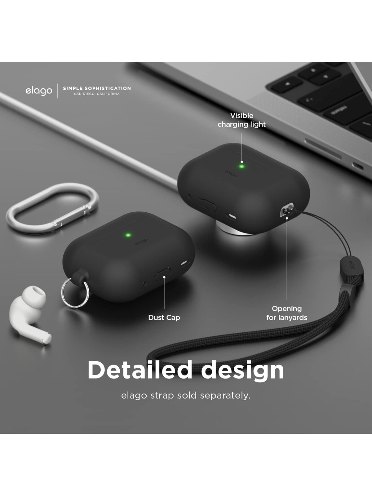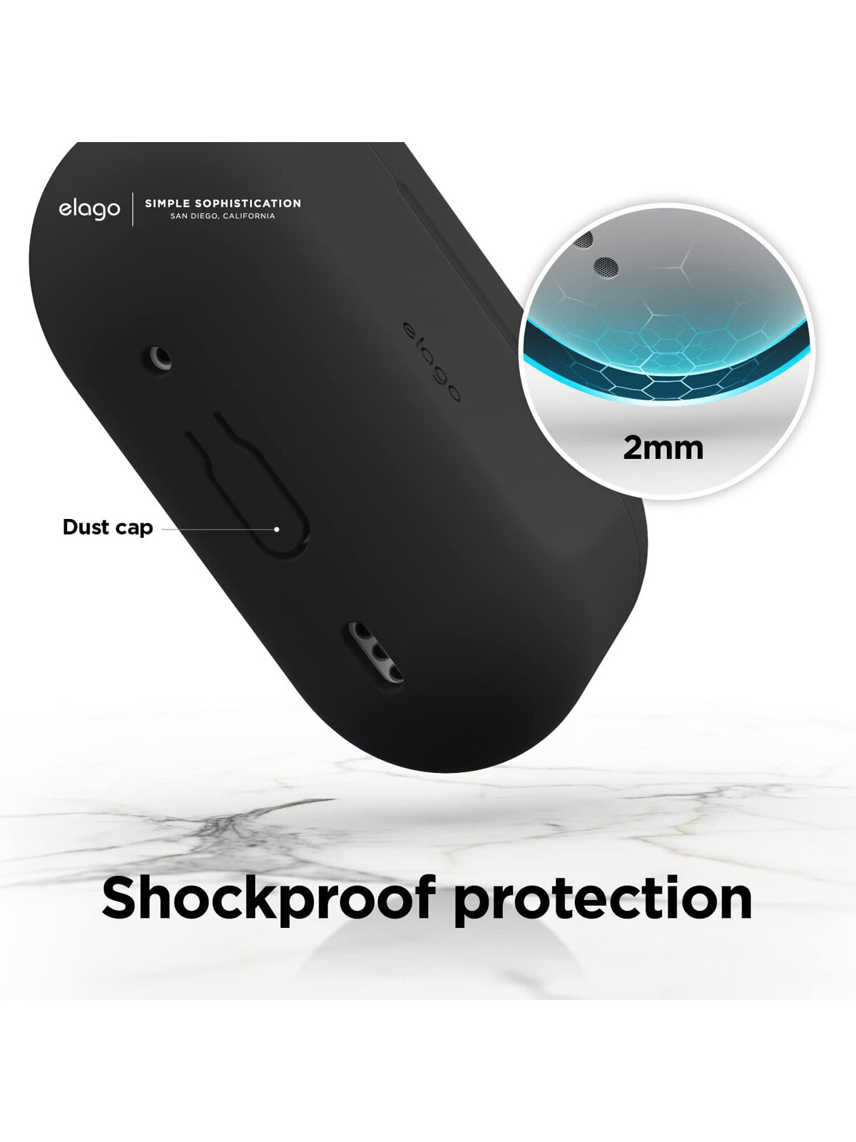 Защитный чехол бренда Elago для AirPods Pro 2 подходит для моделей с разъемом Lightning и USB-C. Кейс выполнен из приятного на ощупь премиального силикона, который плотно облегает Airpods, обеспечивая защиту на 360°. Структура материала не позволит кейсу выскользнуть из рук и отлично защитит его от различных царапин, потертостей и повреждений. Мягкие стенки не придают объем, легко очищаются от загрязнений и обеспечивают комфортную ежедневную эксплуатацию. Благодаря запатентованной технологии, на корпусе аксессуара предусмотрено утоньшение стенки до 0.3мм, которое идеально подходит для LED-индикатора, оно полноценно пропускает свет, но при этом не накапливает грязь и пыль, как в аналогичных чехлах. Чехол имеет отверстия для динамиков и шнурка. Для возможности проводной зарядки предусмотрена прорезь для кабеля. Крышка не соединена с основным корпусом чехла и крепится на устройство за счет нескользящего покрытия на внутренней поверхности, достаточно просто прижать ее. Модель оснащена алюминиевым карабином. Пост
