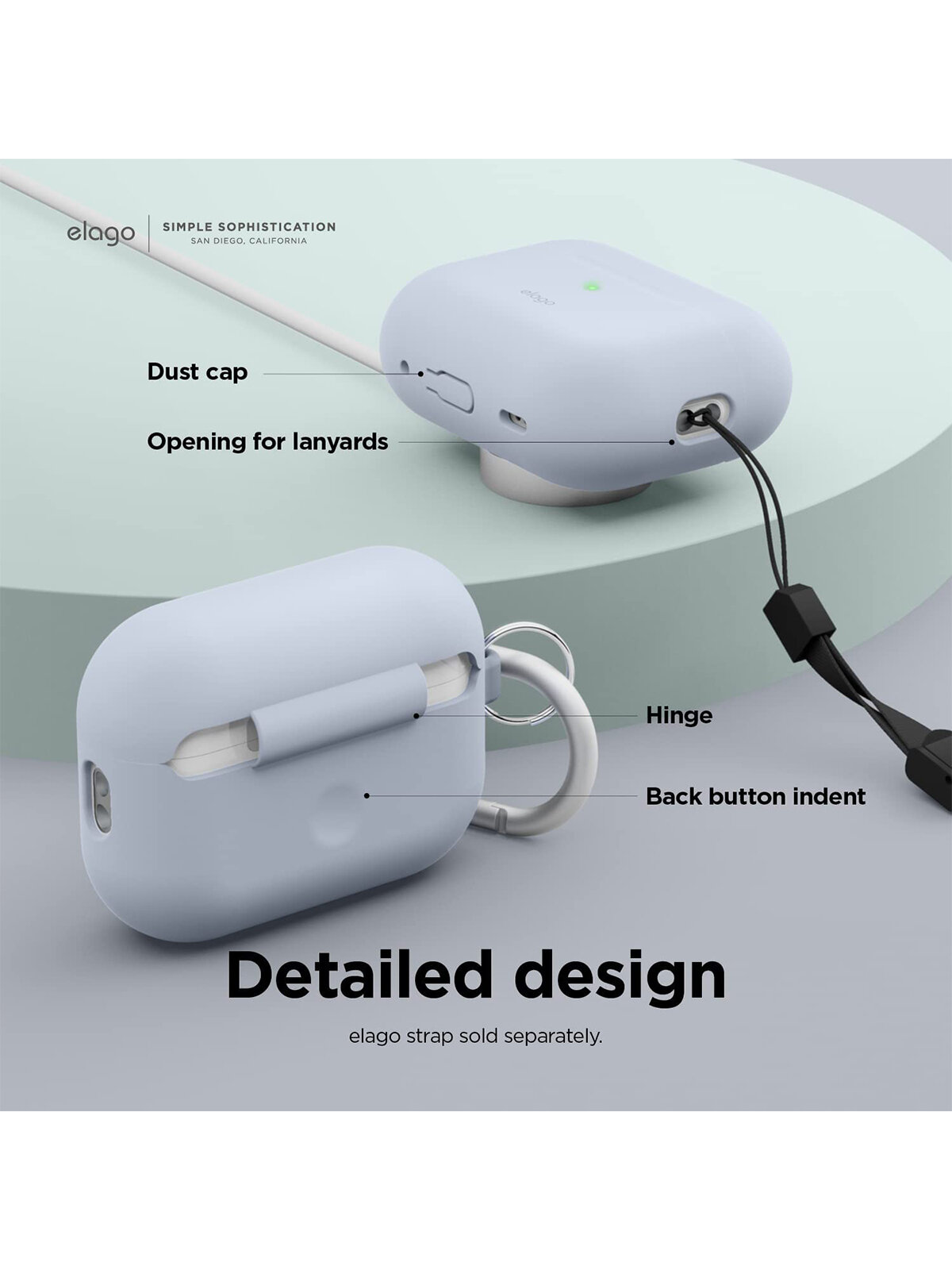 Чехол Elago для AirPods Pro 2 Silicone Hang Case Light Blue
