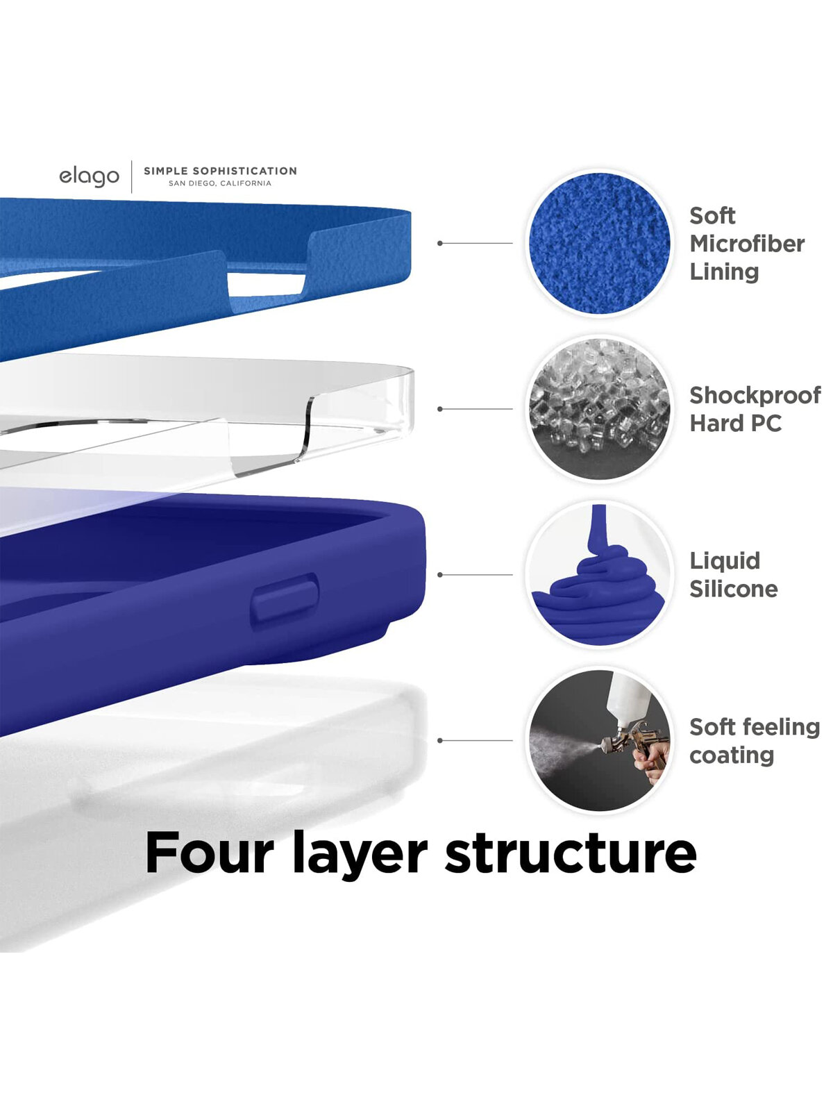 Защитный чехол-накладка бренда Elago изготовлен из жидкого силикона, обладает высокими амортизирующими свойствами и обеспечивает защиту смартфона от повреждений, которые неизбежны в процессе ежедневной эксплуатации. На внешнюю часть изделия нанесено бархатистое и приятное на ощупь напыление с эффектом Soft-touch. Внутренняя часть чехла покрыта микрофиброй, которая защищает гаджет от потёртостей и иных внешних воздействий. Боковые грани слегка выступают над плоскостью экрана, что препятствует появлению на нём царапин, возникающих при соприкосновении с твёрдыми поверхностями. Высокий бортик вокруг камеры оберегает объектив от механических дефектов. Клавиши смартфона защищены заглушками, интегрированными в чехол, что предотвращает попадание грязи, пыли и воды. Изделие не препятствует передаче сигналов NFC.