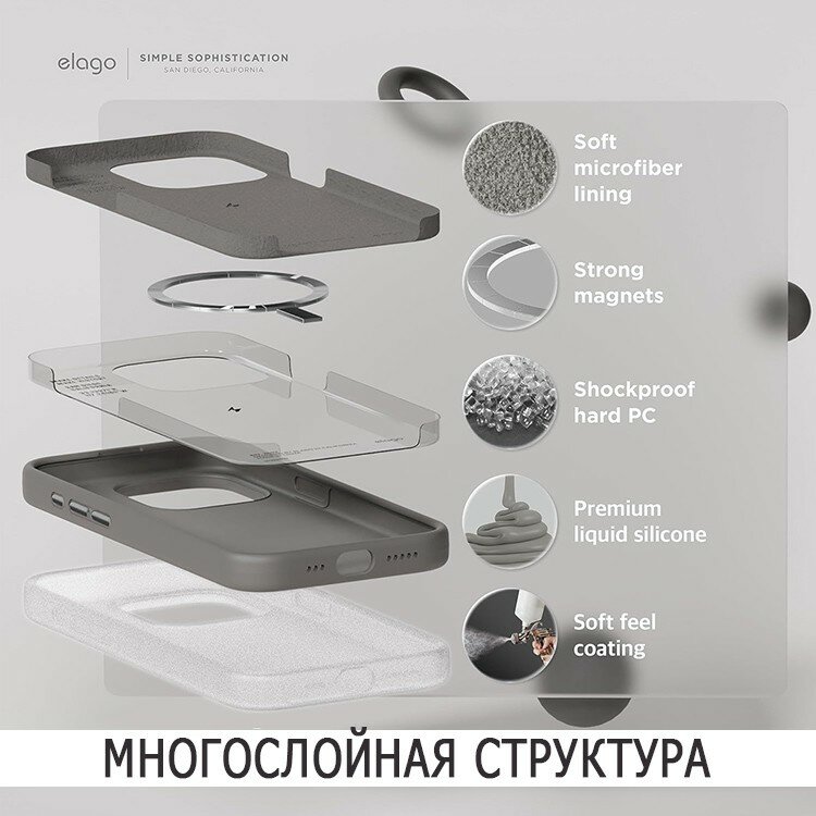 Купить Elago для iPhone 15 Pro чехол Soft silicone (Liquid) Medium Gray (MagSafe) с доставкой по всей России.