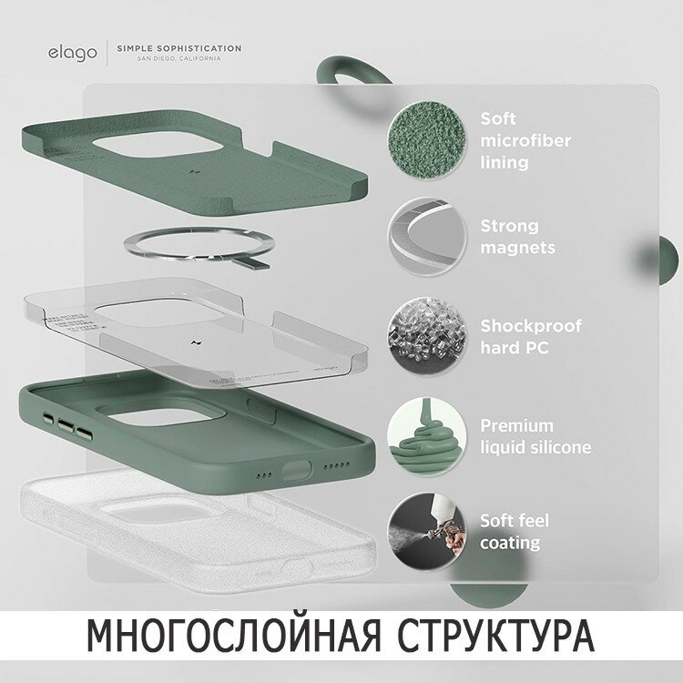 Купить Elago для iPhone 15 Pro чехол Soft silicone (Liquid) Midnight Green (MagSafe) с доставкой по всей России.