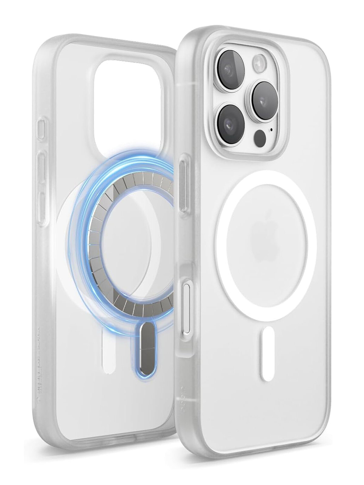 Изготовлен из пластика и силиконового бампера, благодаря которому он без труда надевается и снимается. Чехол не имеет технологических швов, а также обладает специальным дополнительным матовым покрытием от царапин (anti-scratch) со встроенными магнитами MagSafe