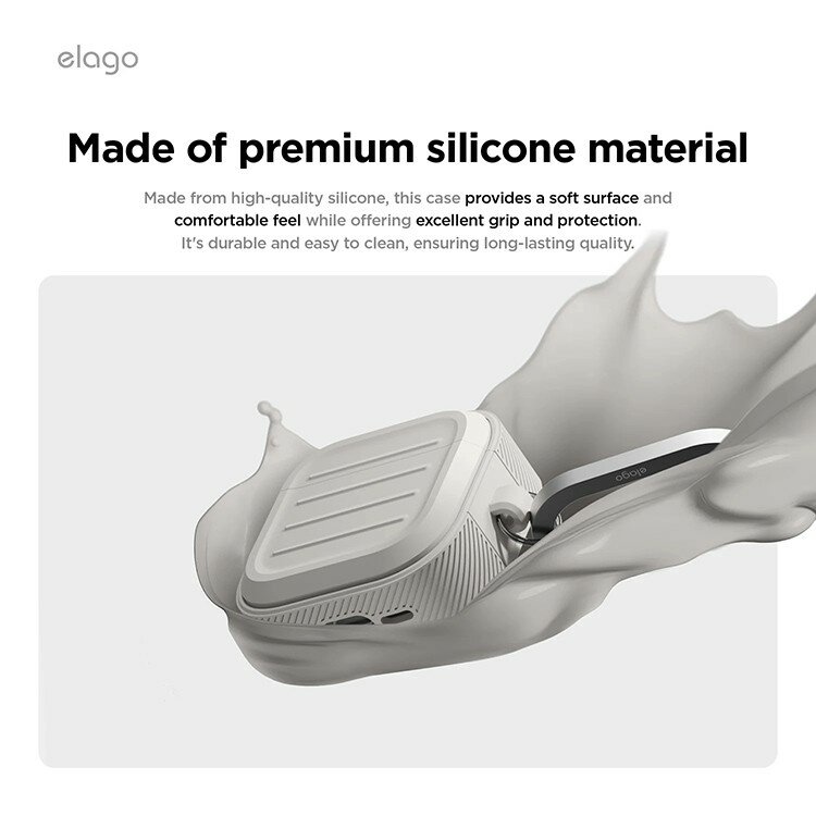 Защитный чехол для AirPods 4 от популярного корейско-американского бренда ELAGO. Кейс выполнен из приятного на ощупь силикона с покрытием Soft-touch и плотно облегает футляр беспроводных наушников. Оснащен ударопрочными выступающими ребрами на корпусе и усиленными углами, что гарантирует повышенную защиту вашего устройства от повреждений, царапин и потертостей, которые неизбежны при повседневном использовании. Благодаря запатентованной технологии, на корпусе аксессуара предусмотрено утончение материала до 0.3 мм, которое идеально садится на LED-индикатор зарядного кейса, полноценно пропускает свет, но при этом нет отверстия, куда могут попадать частицы пыли, мусора, капель влаги. Крышка не соединена с основным корпусом чехла и крепится на устройство за счет нескользящего покрытия на внутренней поверхности, достаточно просто прижать ее. С помощью карабина в комплекте аксессуар можно закрепить на одежде или ручной клади. Чехол не препятствует беспроводной зарядке. Поставляется в оригинальной упаковке производителя.