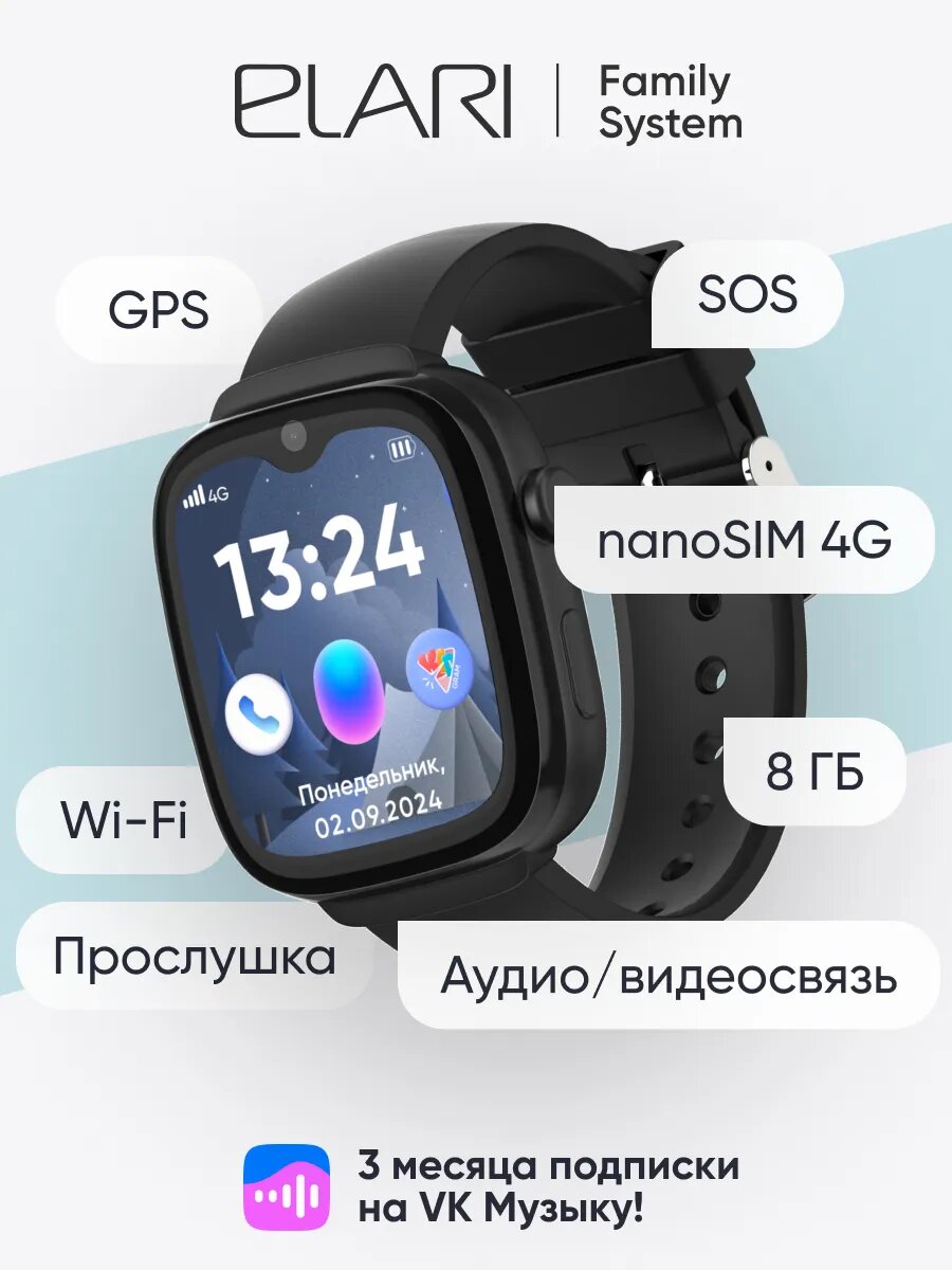 Купить Elari Детские смарт-часы KidGram Watch 4G — черный с доставкой по всей России.