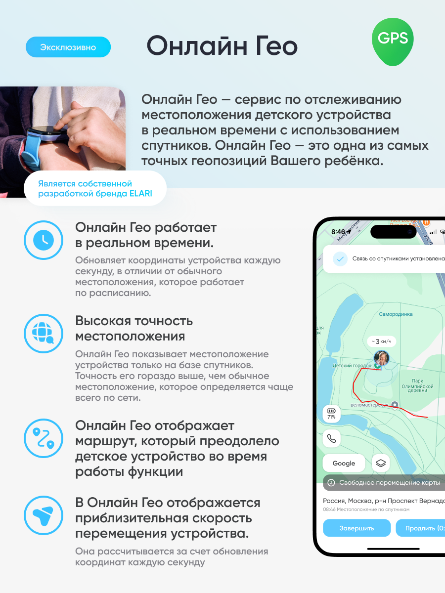 | Дополнительная информация | KidGram (детский шлюз в Telegram), поддержка голосового ассистента Маруся, встроенные игры, запрет контента, до 5 разрешённых геозон, акселерометр |