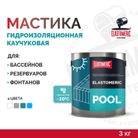 Мастика гидроизоляционная ELASTOMERIC POOL - наносимое в жидком виде, финишное однокомпонентное покрытие для гидроизоляции строительных конструкций и устройства бесшовных финишных гидроизоляционных покрытий в бассейнах, резервуарах, искусственных водоемах, фонтанах и т. д. После высыхания образует очень прочную, водонепроницаемую, высокоэластичную мембрану без резкого запаха. Подходит как гидроизоляция для ванны