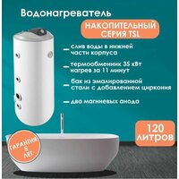 Eldom Green Line Напольный косвенный водонагреватель с одним теплообменником выходы cверху и слева 120л. Водонагреватели ELDOM серии GREEN LINE TSL предназначены для снабжения горячей водой нескольких точек отбора воды. Расположение патрубков сверху и слева позволяет расположить любой водонагреватель из серии GREEN LINE TSL в непосредственной близости от котловой установки Это удобно при обустройстве новых и модернизации существующих компактных котельных. Нагрев воды в бойлере происходит при помощи мощного теплообменника с развитой поверхностью, подключаемого к системе отопления дома или встроенного электрического ТЭНа. Помимо этого в конструкции предусмотрена возможность подключения дополнительного ТЭНа (не входит в комплект поставки) мощностью 3 или 4,5 кВт. Регулировка температуры при нагреве воды от теплообменника осуществляется за счет котловой автоматики (не входит в комплект поставки). Устройства для регулировки температуры воды при нагреве от основного ТЭНа встроены.