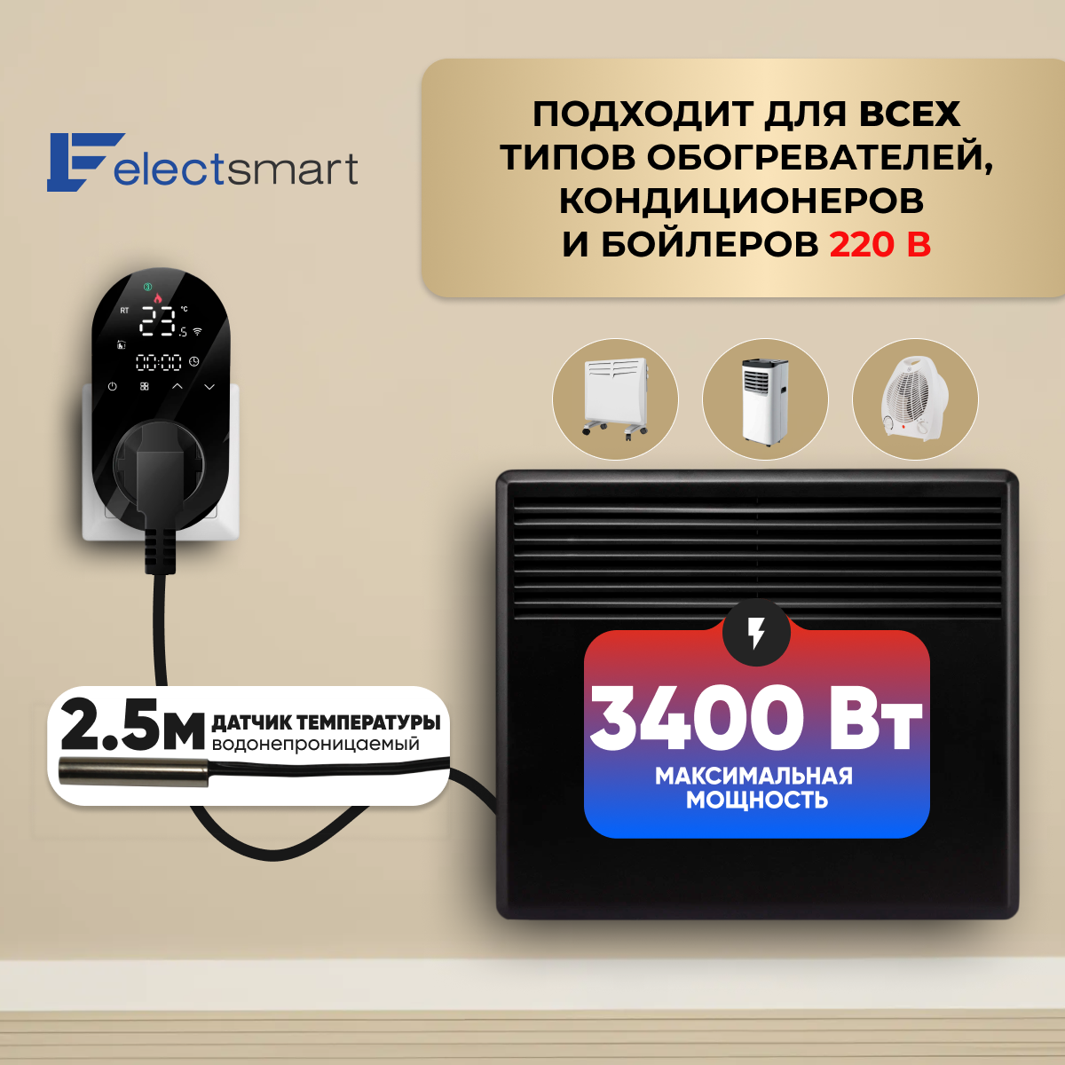 ELECTSMART E-10W-YM Терморегулятор для обогревателя, с WiFi, голосовое управление Яндекс Алиса: сравнение цен, характеристики, фото, актуальное наличие и цены.