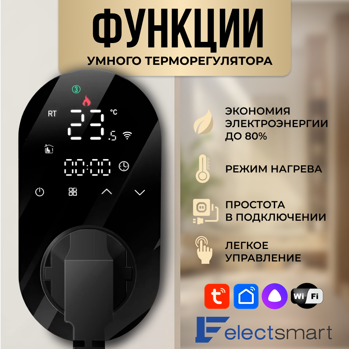 Купить ELECTSMART E-10W-YM Терморегулятор для обогревателя, с WiFi, голосовое управление Яндекс Алиса с доставкой по всей России.
