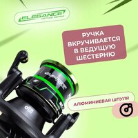 ЕLEGANCE METHOD Distance Feeder 6500 - безинерционная катушка, созданная для фидерной ловли на сверхдальних дистанциях. Выполнена в чёрном матовом цвете с широкой низкопрофильной алюминиевой шпулей с 2мя круглыми металлическими клипсами. Корпус биг-пит в довольно компактном размере и небольшом весе, мощная главная пара, ввинчивающаяся ручка с облегченным эргономичным кнобом, червячный механизм обеспечивает ровную укладку как лески так и плетеного шнура, оснащается комплектом подшипников 5+1, имеет подшпульную юбку, препятствующую попаданию лески под шпулю катушки, редукция составляет 4,6:1, что позволяет выматывать почти 1м за 1 оборот и спокойно бороться с крупной рыбой, быстрый фрикцион с очень удобной гайкой применим как в классической так и флэт-методной ловле, ролик лесоукладывателя с титановым покрытием и системой Anti-Twist. Данная катушка отлично подойдёт для классической ловли на дальних рубежах водохранилищ, крупных реках, а также для флэт-методной ловли. Эту катушку рекомендуется использовать с длинными фидерными удилищами 3,9 и 4,2м класса хэви/экстра-хэви и лёгкими карповыми удилищами длиной 10 и 12 футов.