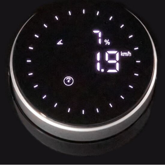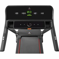Отдельно стоит сказать про консоль и механику управления. Дисплей состоит из основного LED экрана c профилем тренировки и нескольких дополнительных, выводящих основные параметры тренировки. Часть управления вынесена на джойстик-шайбу – это удобный и современный метод управления. Одновременно сам джойстик-шайба представляет из себя LCD экран, на который выводятся такие параметры как скорость, угол наклона и частота пульса. Для дополнительного удобства управление скоростью и наклоном также вынесено на боковые поручни – там же расположены и сенсорные датчики пульса.