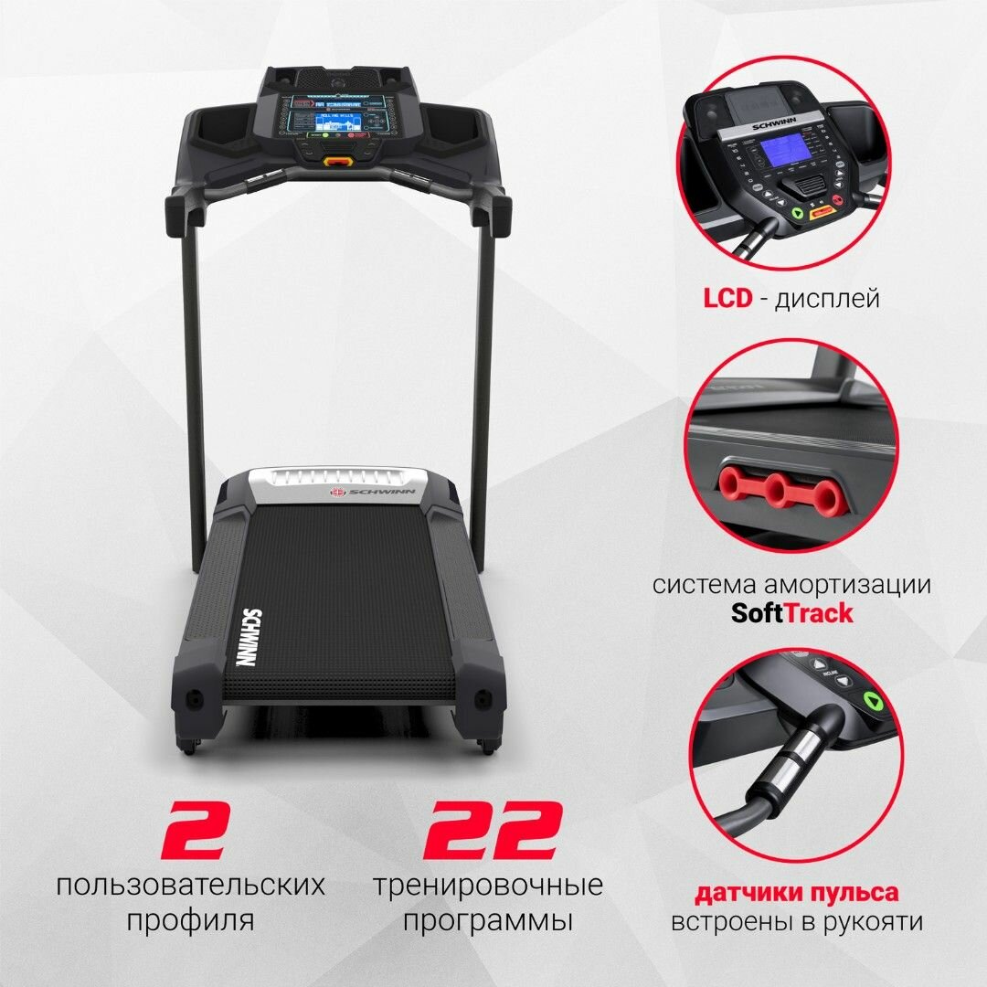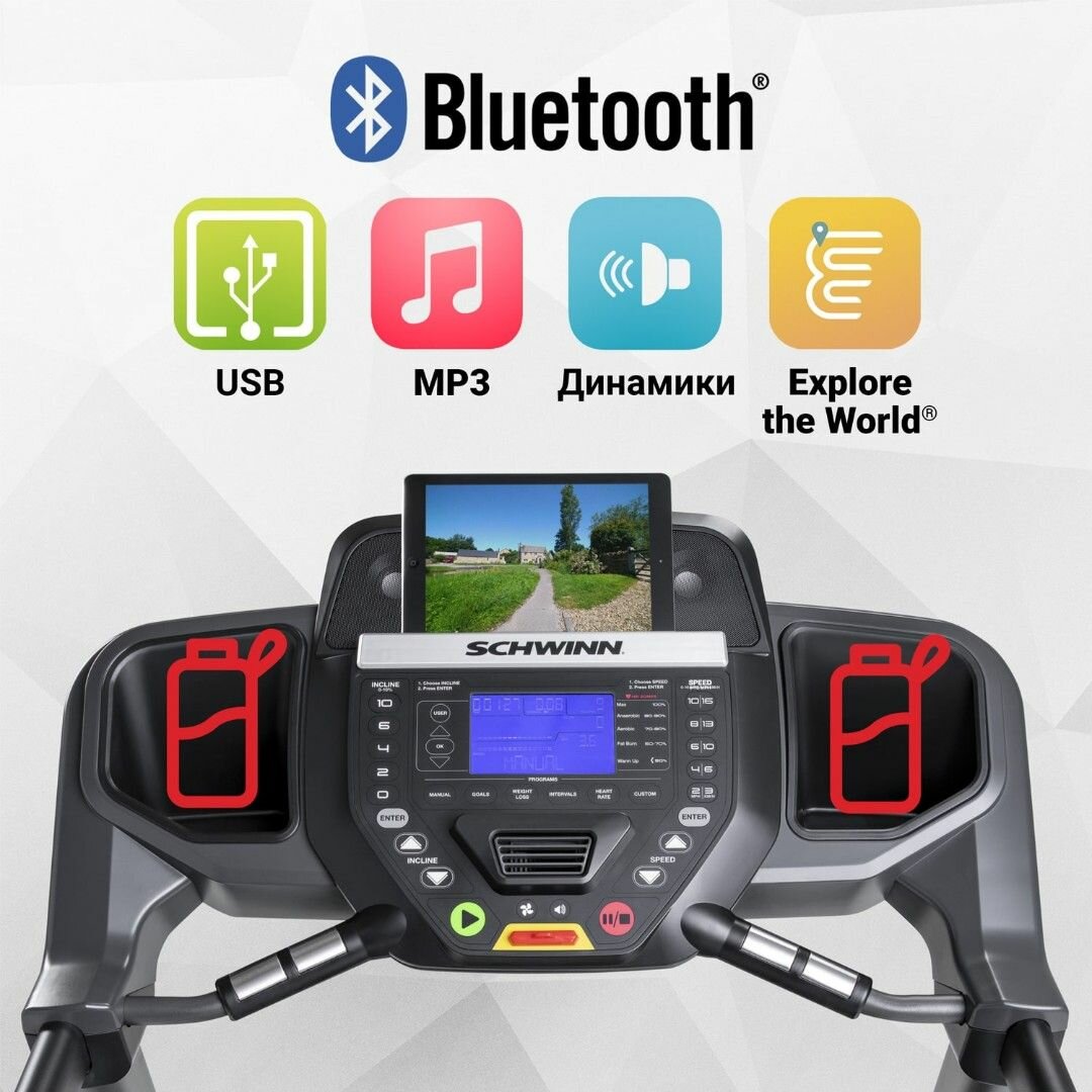 | Дополнительная информация | встроенный кардиодатчик; крепление кардиодатчика: на ручке; встроенные устройства: динамики, вентилятор; подставка для книг, подставка для стакана |