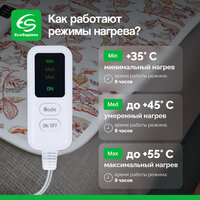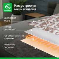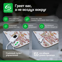 Двуспальная электропростынь благодаря карбоновой технологии согреет Вас мягким инфракрасным теплом при минимальном потреблении электроэнергии. Вы можете выбрать одну из трех автоматических программ. Пульт можно отсоединить и постирать электропростынь (разрешена ручная стирка). Функция автоотключения сработает через 8 часов. Одна сторона простыни цветная, выполнена из хлопка, другая светлая, выполнена из ворсистого материала, предотвращающего скольжение. Современный дизайн и универсальный размер простыни с подогревом позволяют использовать ее в качестве простыни, двуспального одеяла или уютного пледа дома или на даче. Размер 150х180 см; материал – хлопок, полиэстер; изготовлено в России, Санкт-Петербург; гарантия 24 мес.