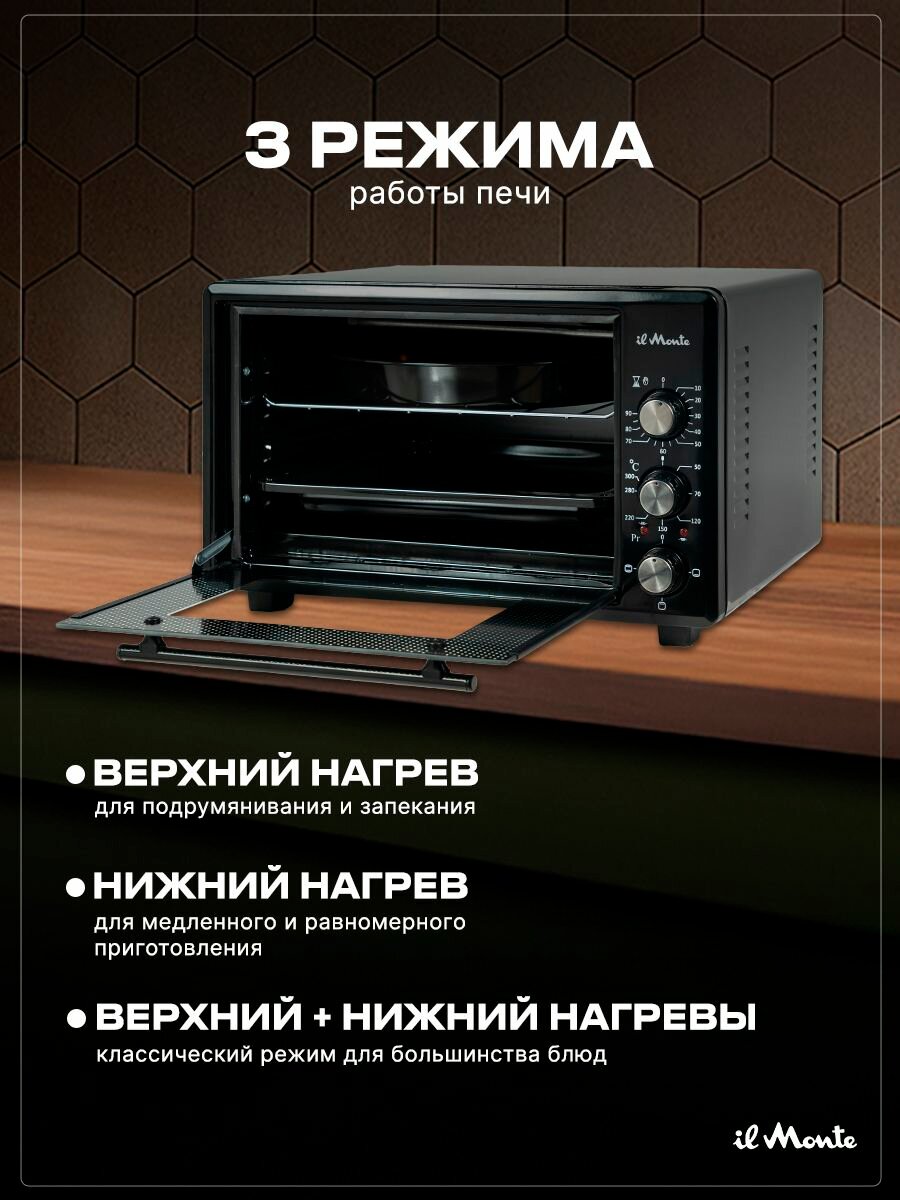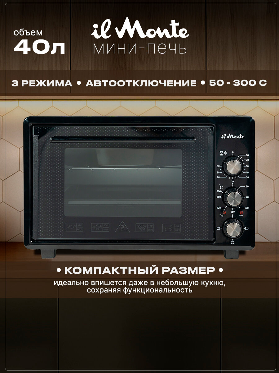 Духовка электрическая настольная, 40 л, Автоотключени, от 50 до 300 С, Эмаль «Легкая очистка», il Monte EO-4003: сравнение цен, характеристики, фото, актуальное наличие и цены.