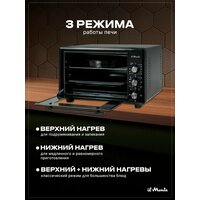 Духовка электрическая настольная, 40 л, Автоотключени, от 50 до 300 С, Эмаль «Легкая очистка», il Monte EO-4003
