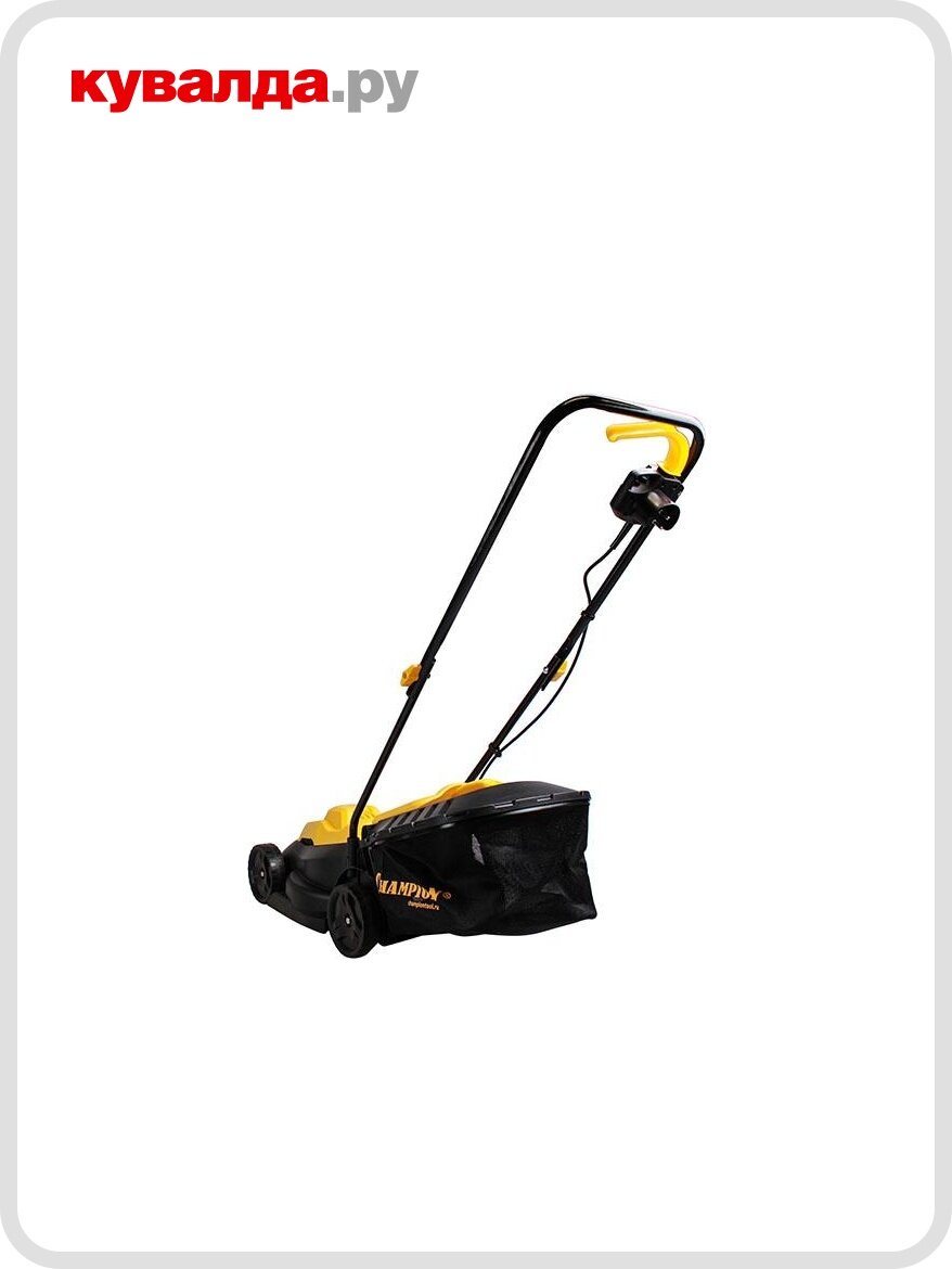 CHAMPION Газонокосилка эл. EM3411 { 1 кВт пласт+ткань 30л шир.320мм выс.25-65мм, 6,4кг }