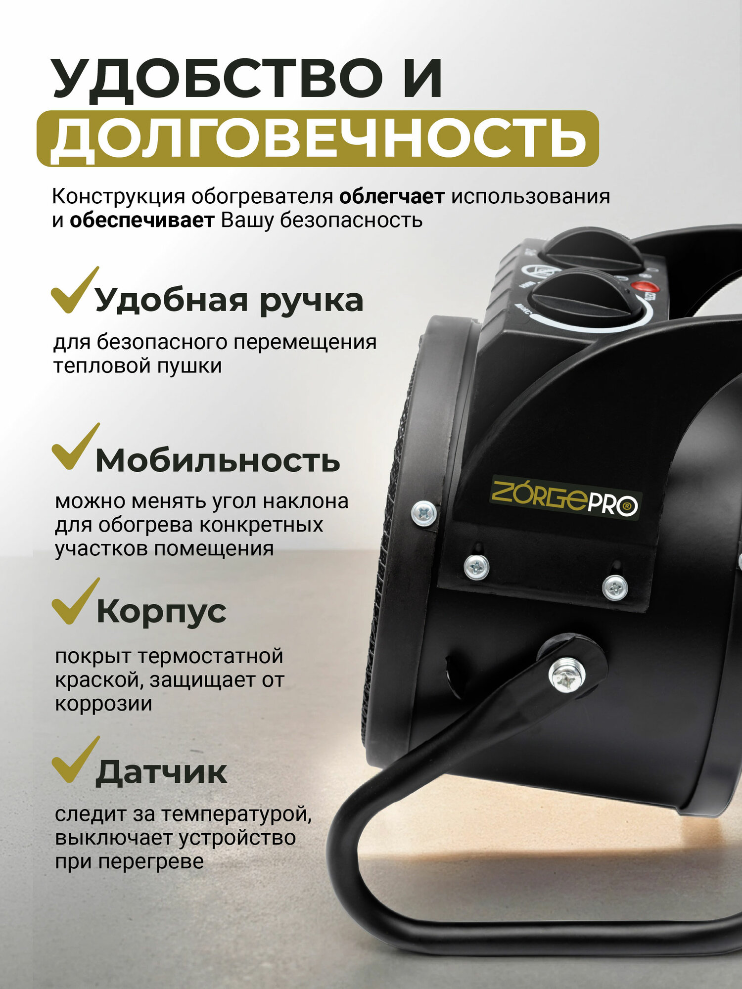В целом, электрическая тепловая пушка ZORGEPRO EH-3 является отличным выбором для тех, кто ищет надежное и эффективное решение для обогрева помещений.
