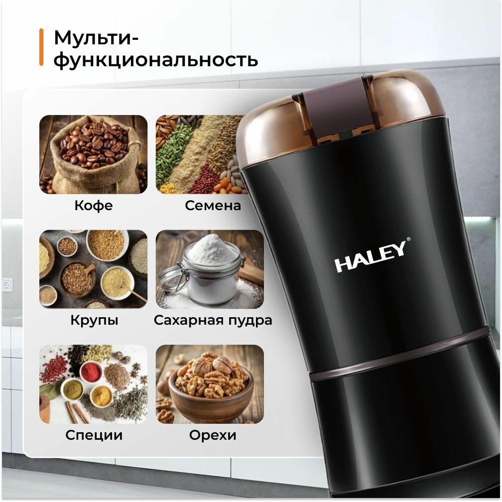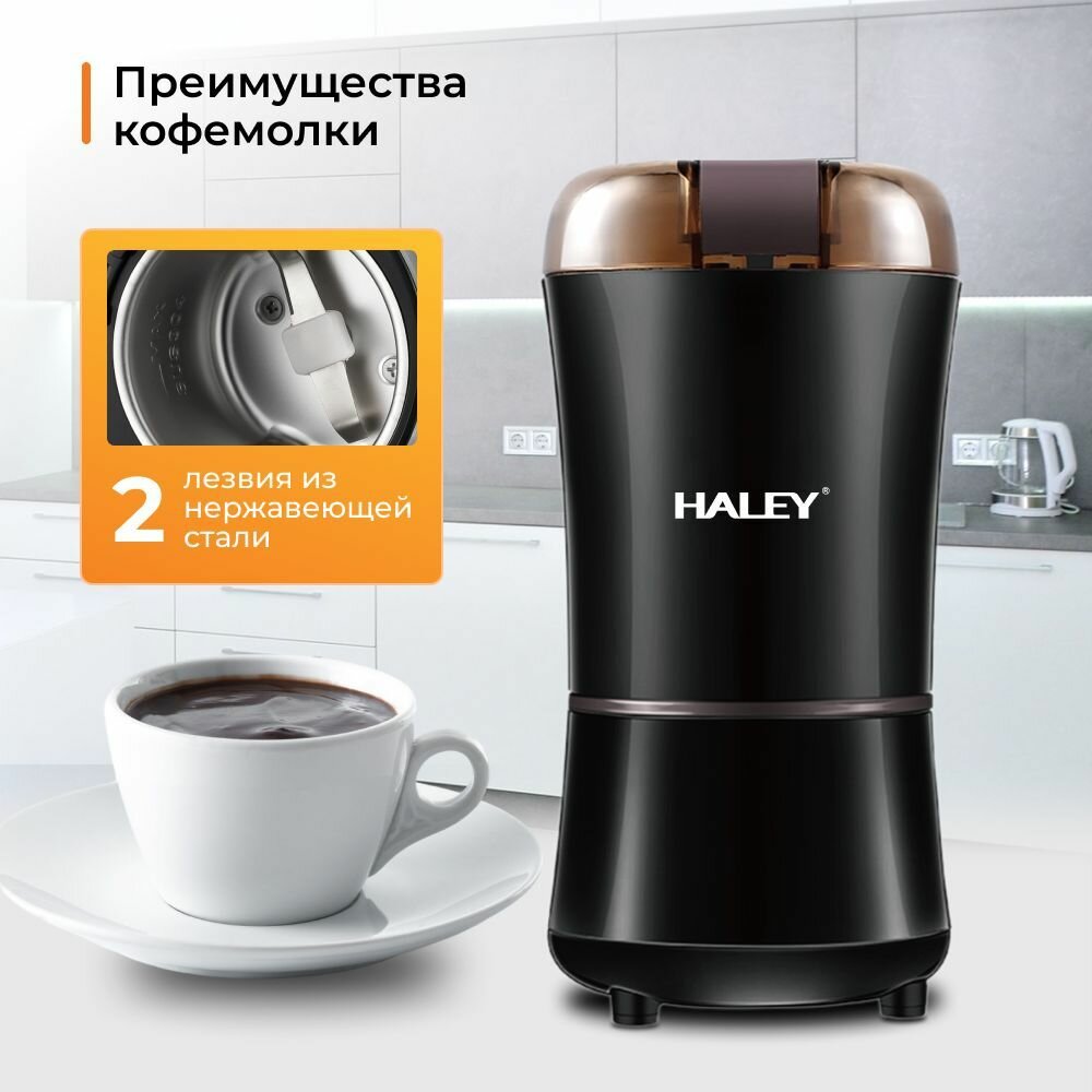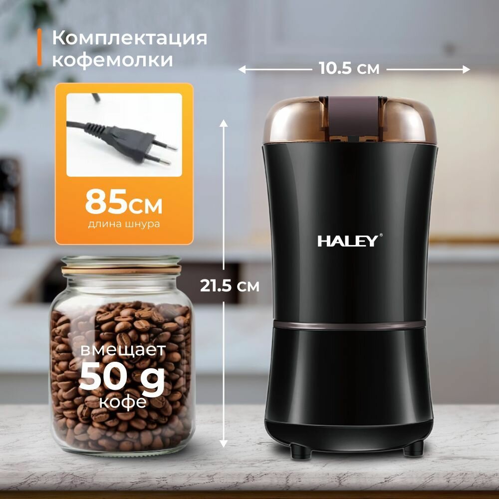 Электрическая кофемолка HALEY-2101 черная, 160 Вт, 50 г, с ножами из нержавеющей стали и прозрачной крышкой: сравнение цен, характеристики, фото, актуальное наличие и цены.
