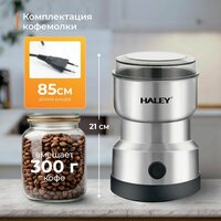 Электрическая кофемолка HALEY-2114 Серебро, 200 Вт, 300 г, с ножами из нержавеющей стали и прозрачной крышкой. Подходит для кофейных зерен, круп, специй и орехов.: сравнение цен, характеристики, фото, актуальное наличие и цены.