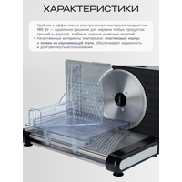 Купить Электрическая ломтерезка, толщина нарезки до 18 мм, мощность 160 Вт, черная с доставкой по всей России.