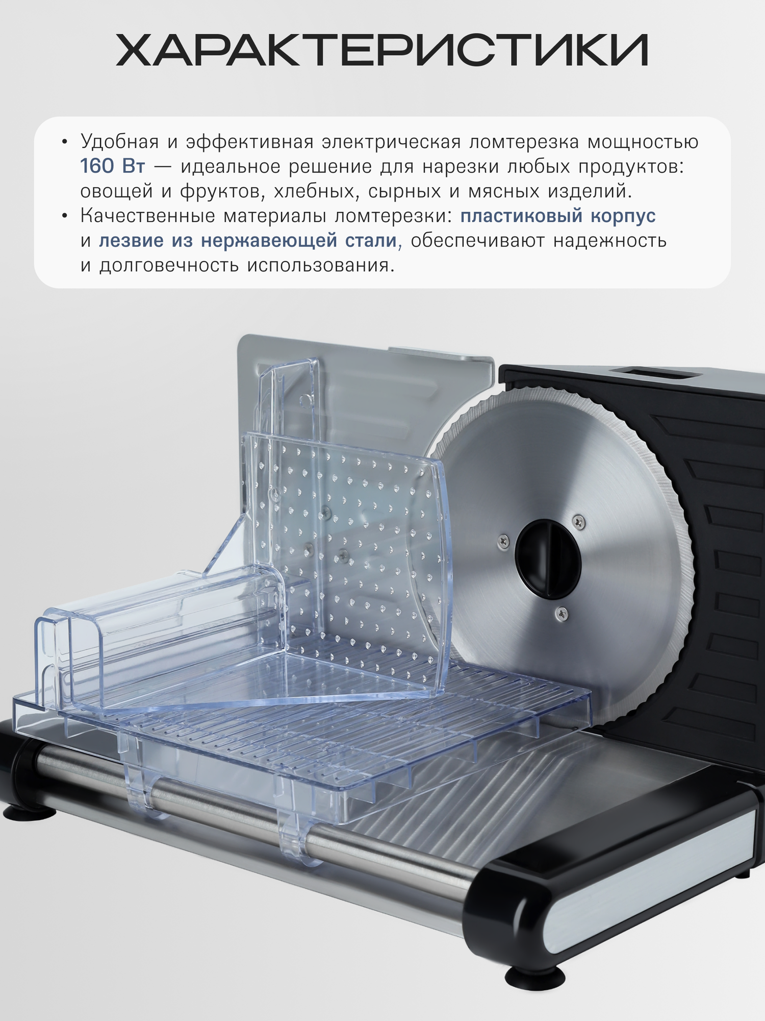Электрическая ломтерезка, толщина нарезки до 18 мм, мощность 160 Вт, черная: сравнение цен, характеристики, фото, актуальное наличие и цены.