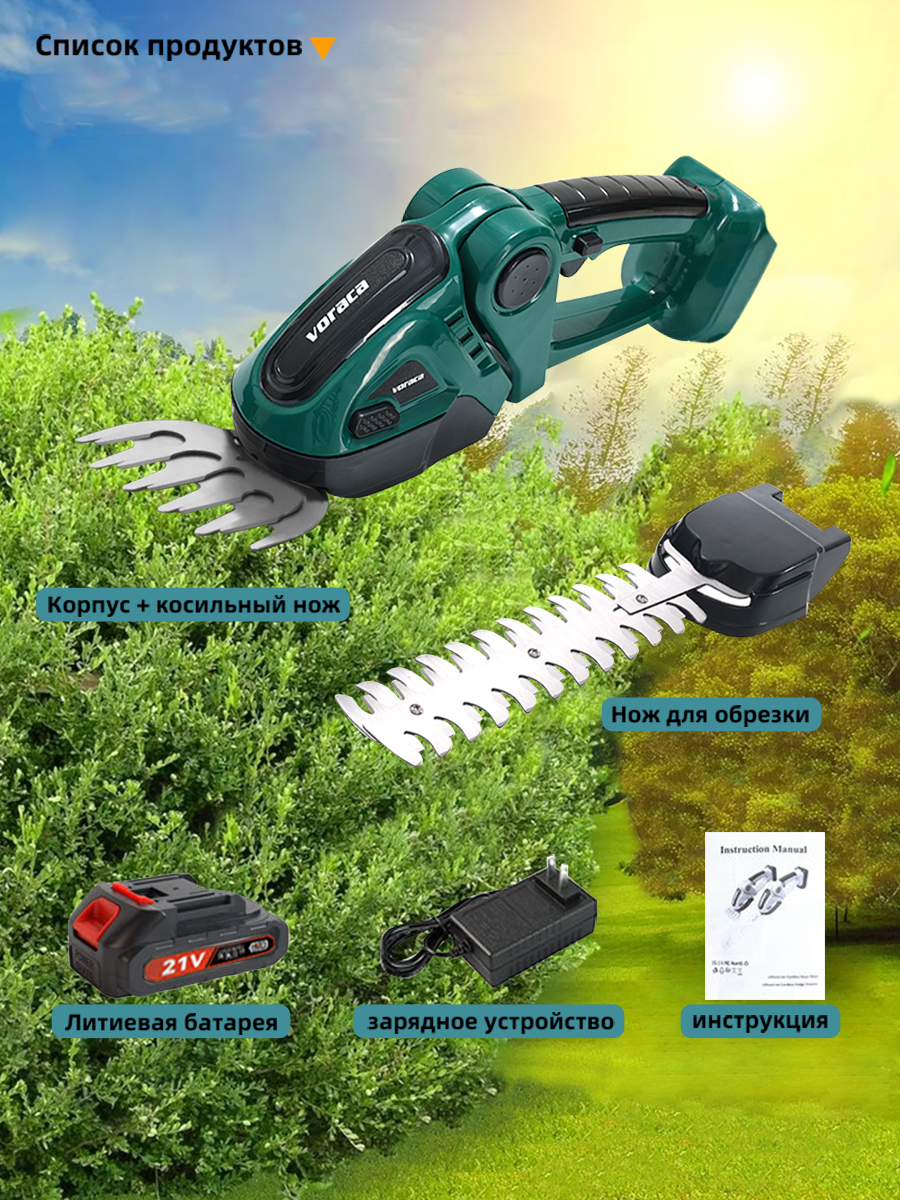 Кусторез аккумуляторный садовый электросекатор ручной сучкорез электрический, ножницы для травы с 2 насадками: сравнение цен, характеристики, фото, актуальное наличие и цены.
