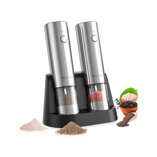 Набор электромельниц для специй. В мельницах для специй предусмотрена регулировка тонкости помола- от крупного до самого тонкого. Надежный керамический механизм мельницы с легкостью справляется с помолом. Используя набор электромельниц, вы получаете максимально насыщенный аромат и вкус специй, который не улетучивается при хранении, в отличие от готовых молотых приправ. Корпус мельницы выполнен из нержавеющей стали, долговечный и простой в уходе. Стильный универсальный дизайн подойдет для любых интерьеров. Красивая подарочная упаковка превращает набор мельниц для специй в готовый подарок для ваших родных, близких, друзей и коллег. Перцемолка электрическая подходит для всех видов перца, кристаллов морской соли, приправ и зерна. Возможно вы нас искали по тегам: измельчение и смешивание техника для кухни кухонный набор перцемолка электрическая дробилка для зерна солонка и перечница набор солонка электрическая электротурка техника для кухни электрическая солонка и перечница для специй набор емкостей соль перец сольница с подсветкой. Электро мельница для специй отлично подойдет как подарок любимой девушке, жене, маме на новый год, черная пятница, новоселье, день рождения, просто так.