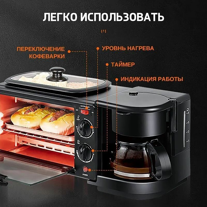 Купить Мини печь 3 в 1 с кофеваркой, машина для приготовления завтрака, мультиварка-скороварка электрическая духовка + кофеварка + гриль, духовка электрическая настольная с доставкой по всей России.