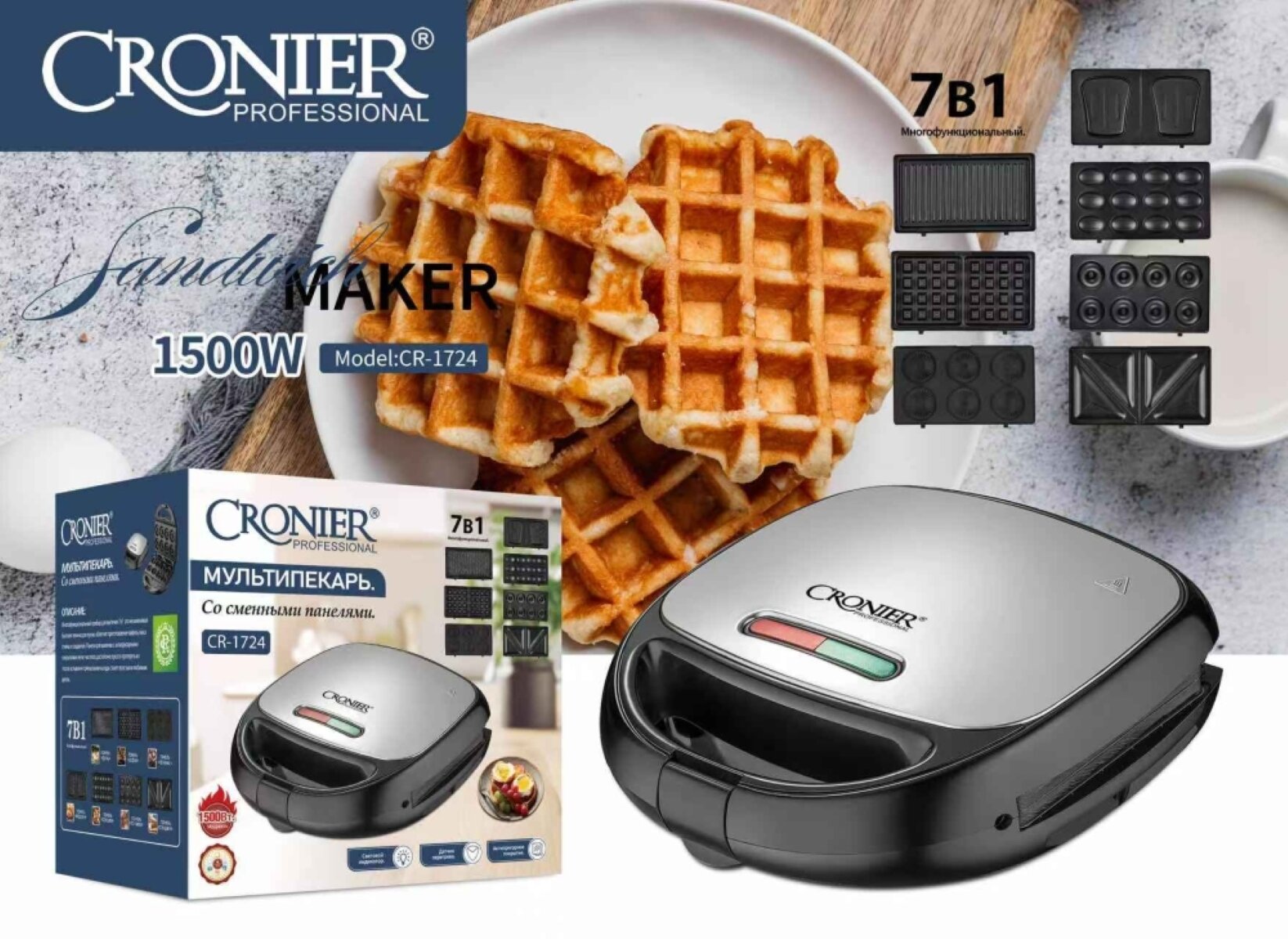 Электрическая Мультипекарь 7в1 CRONIER CR-1724 / Гриль-вафельница с 7 сменными панелями, 1500 Вт: сравнение цен, характеристики, фото, актуальное наличие и цены.