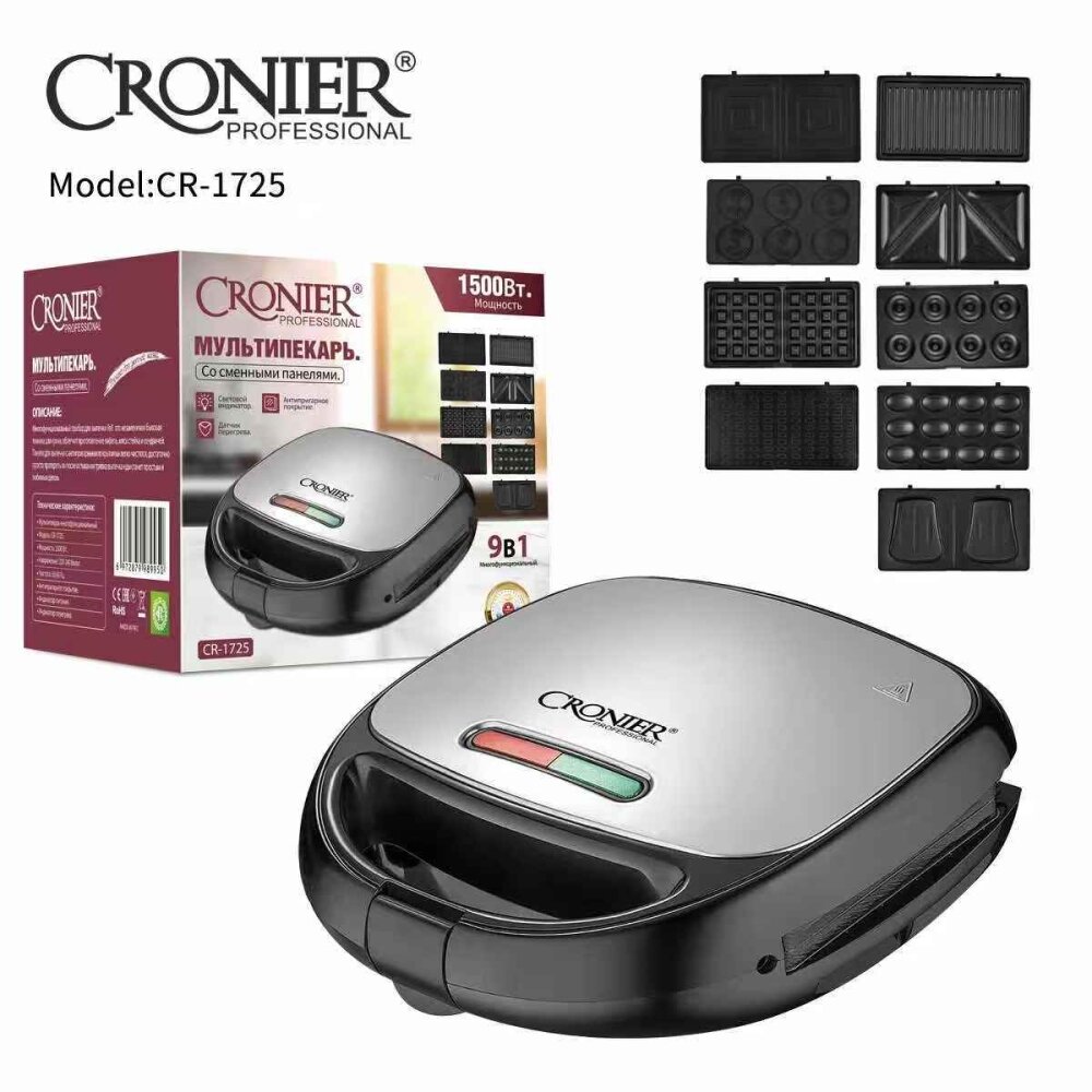 Купить Электрическая Мультипекарь 9в1 CRONIER CR-1725 / Гриль-вафельница с 9 сменными панелями, 1500 Вт с доставкой по всей России.