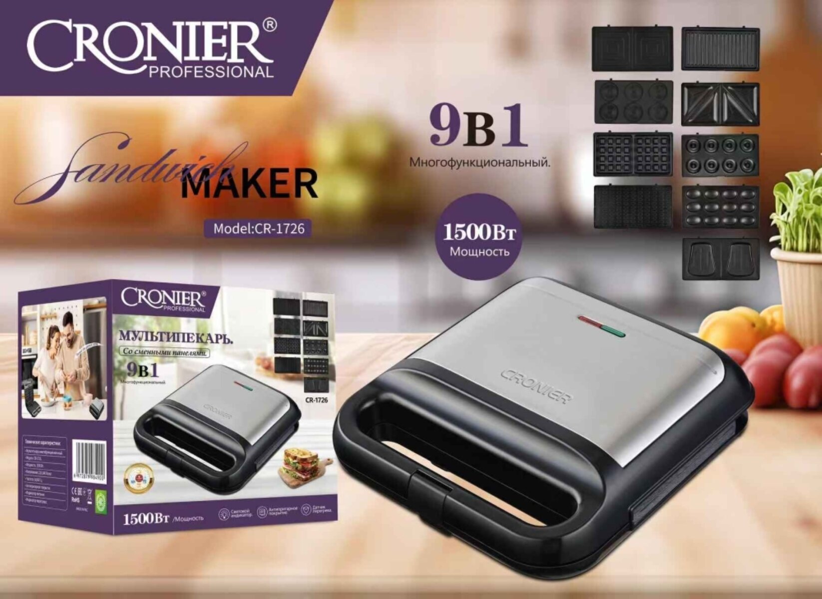 Электрическая Мультипекарь 9в1 CRONIER CR-1726 / Гриль-вафельница с 9 сменными панелями, 1500 Вт: сравнение цен, характеристики, фото, актуальное наличие и цены.