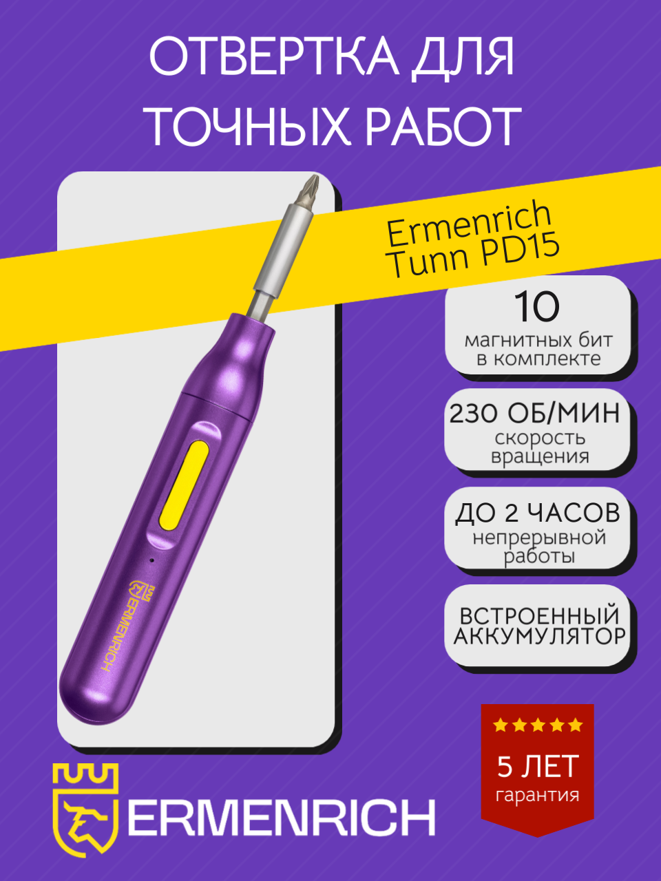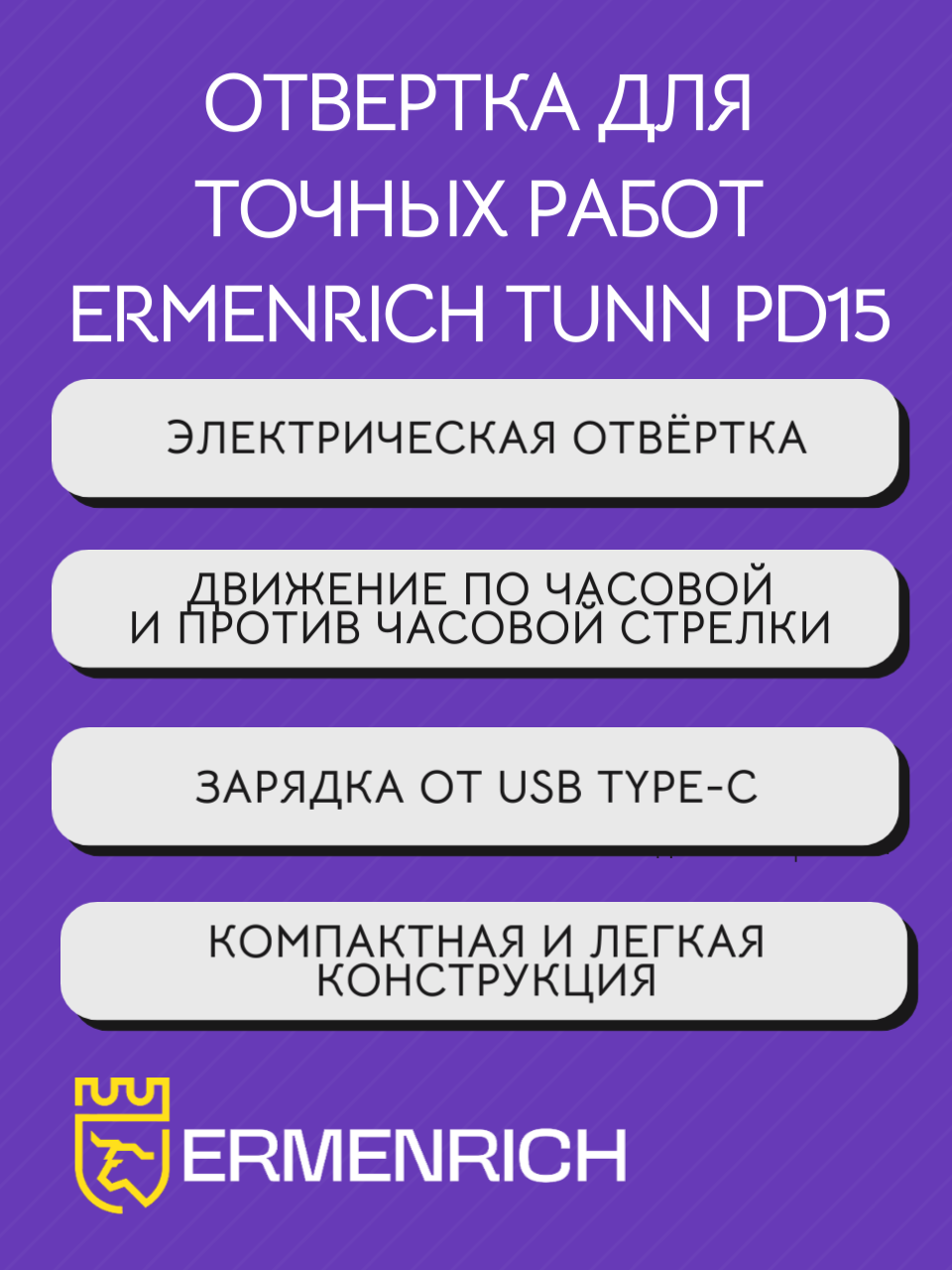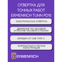 Купить Электрическая отвертка для точных работ Ermenrich Tunn PD15, аккумуляторная, 10 магнитных бит с доставкой по всей России. Электрическая отвертка для точных работ Ermenrich Tunn PD15, аккумуляторная, 10 магнитных бит: сравнение цен, характеристики, фото, актуальное наличие и цены.