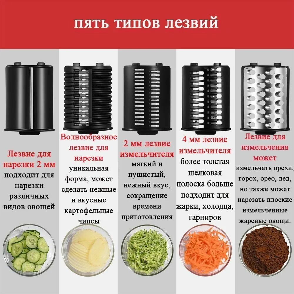 Электрическая овощерезка, терка, измельчитель электрические/ терка для сыра/машина для салата для фруктов/с 5 бесплатными насадками: сравнение цен, характеристики, фото, актуальное наличие и цены.