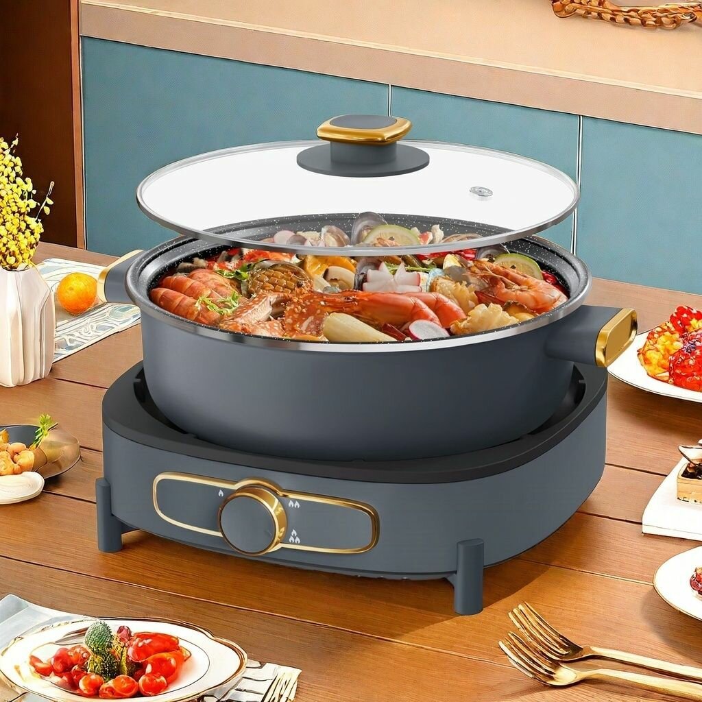 Электрическая плита, сплит-система, большой объем 4 литра, антипригарное покрытие, 220 В/1500 Вт