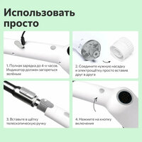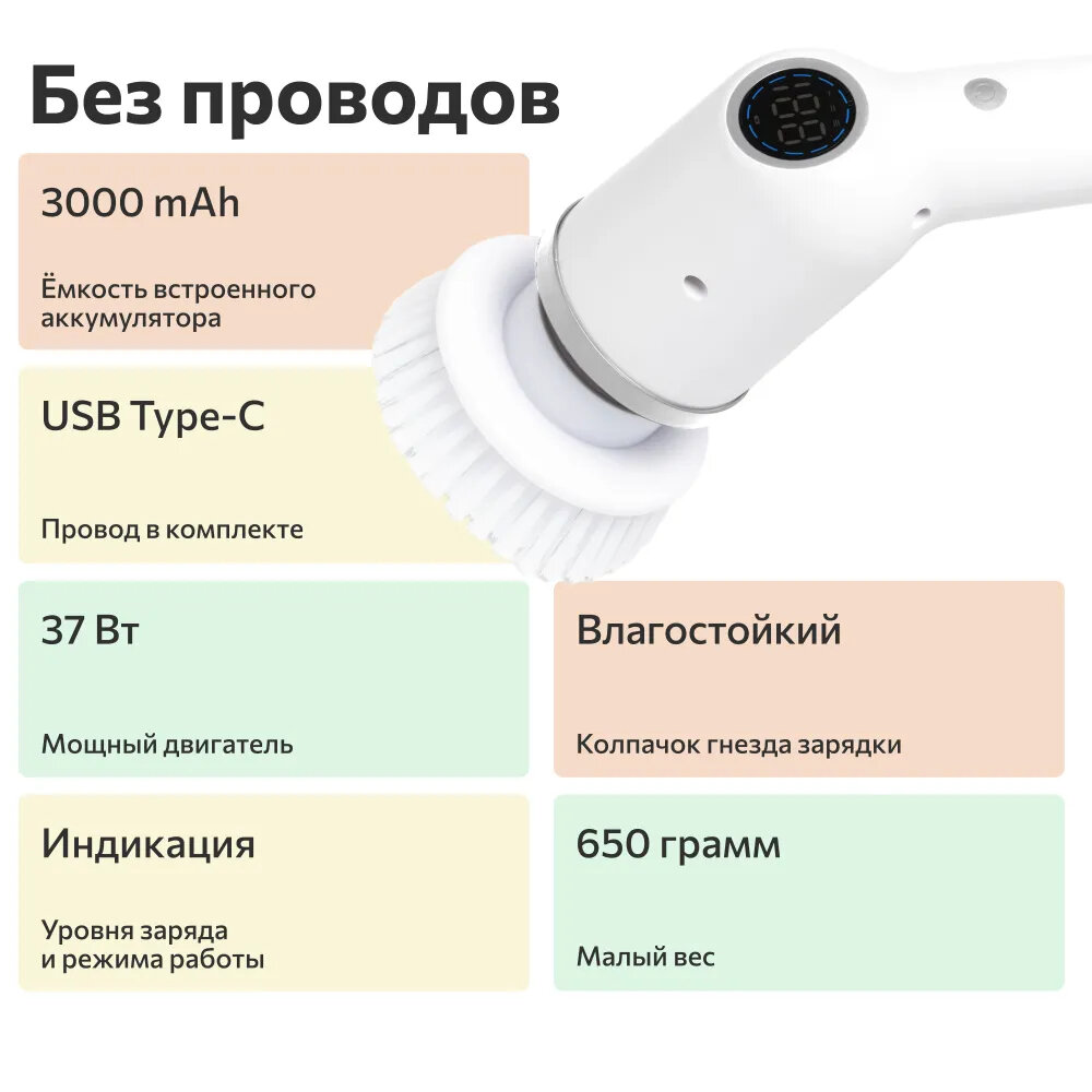 Благодаря множеству насадок, представляющих собой несколько видов щеток из разных материалов, устройство позволяет быстро и качественно мыть труднодоступные зоны - углы, угловые помещения, швы, автомобильные диски, колёса.
