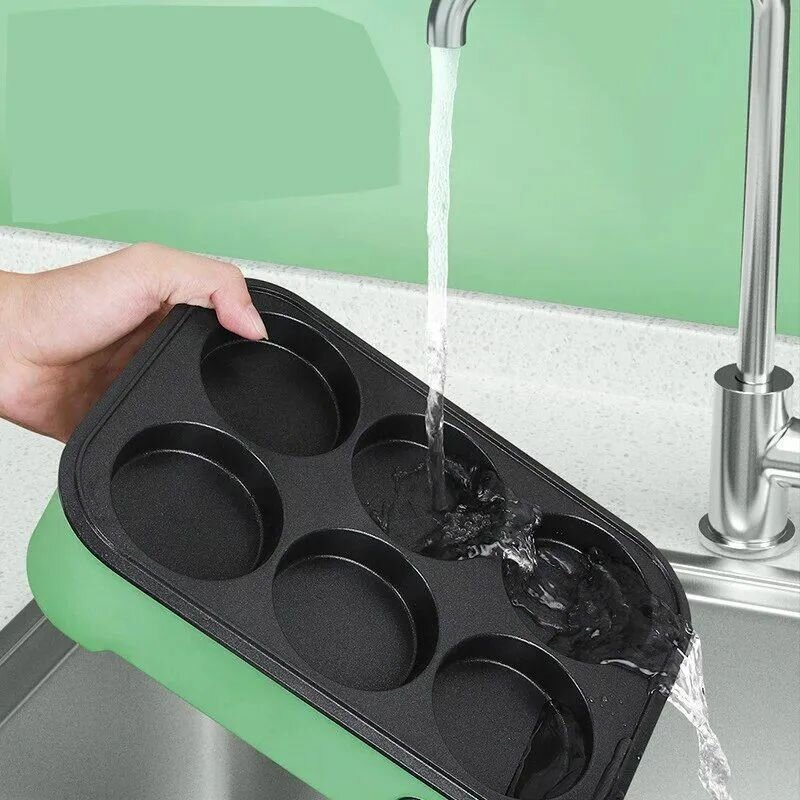 Купить Электрическая сковорода-гриль Modengo с крышкой 600 Ватт, электрическая для завтраков, для яичницы, для оладий, 6 ячеек с доставкой по всей России.
